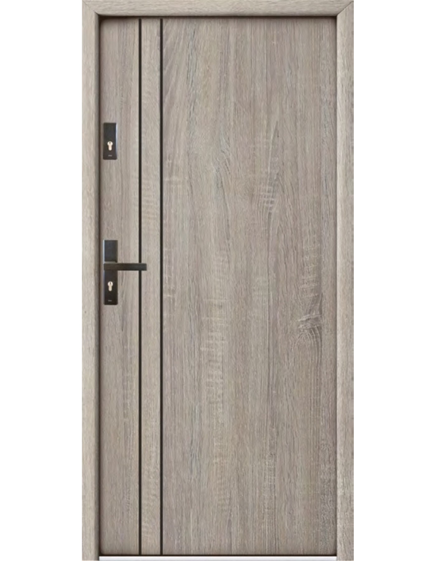 Solidne drzwi wewnątrzklatkowe Otium z ościeżnicą drewnianą, dostępne w 62 wzorach i 18 kolorach. Zapewniają wysoką izolację akustyczną Rw=38 dB, posiadają podwójne zamki trzybolcowe, bolce antywyważeniowe, wizjer panoramiczny oraz regulowane zawiasy. Dostępne w szerokościach NTP, 80, 80N, 90 z opcją paneli i podświetlenia LED.