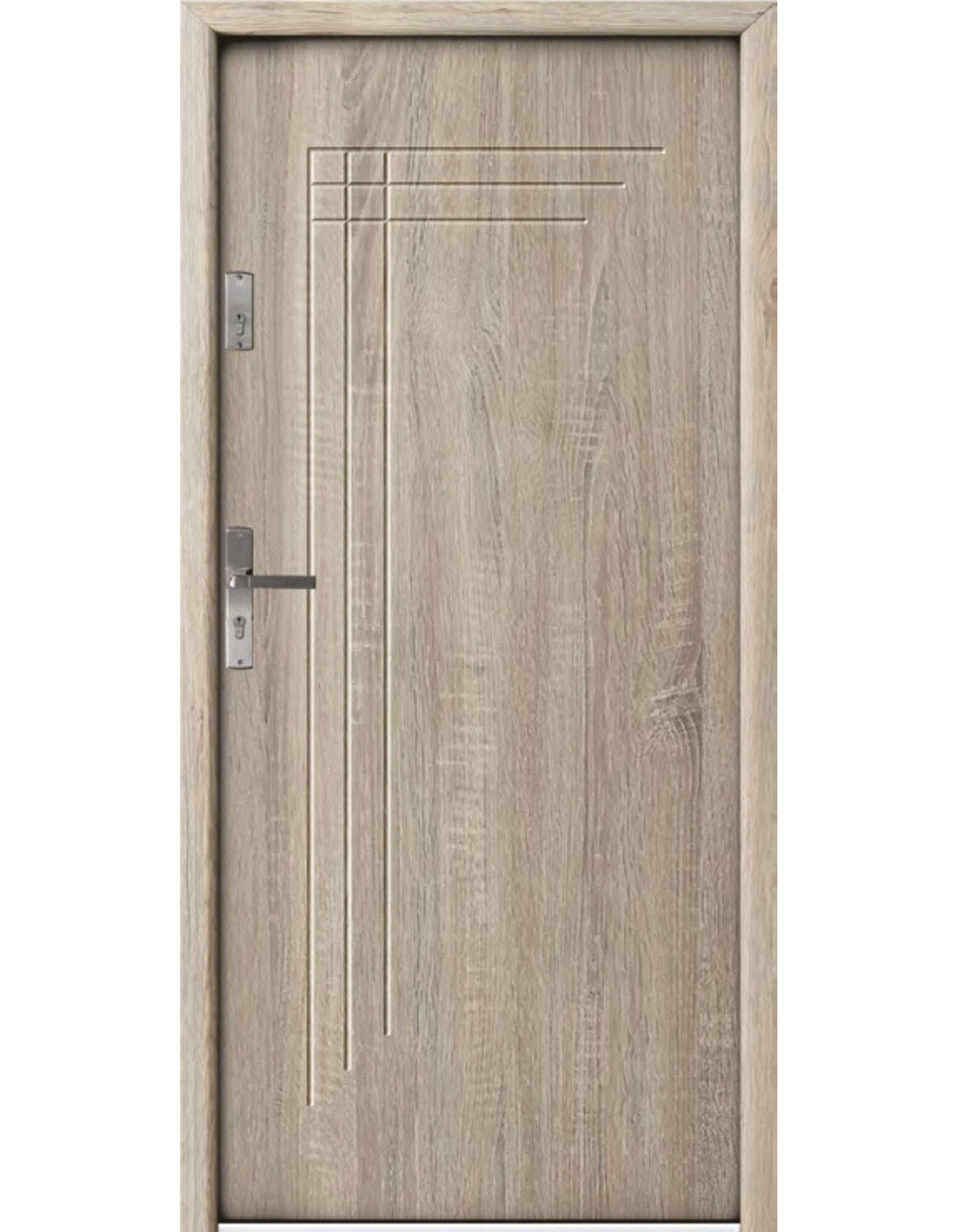 Solidne drzwi wewnątrzklatkowe Otium z ościeżnicą drewnianą, dostępne w 62 wzorach i 18 kolorach. Zapewniają wysoką izolację akustyczną Rw=38 dB, posiadają podwójne zamki trzybolcowe, bolce antywyważeniowe, wizjer panoramiczny oraz regulowane zawiasy. Dostępne w szerokościach NTP, 80, 80N, 90 z opcją paneli i podświetlenia LED.