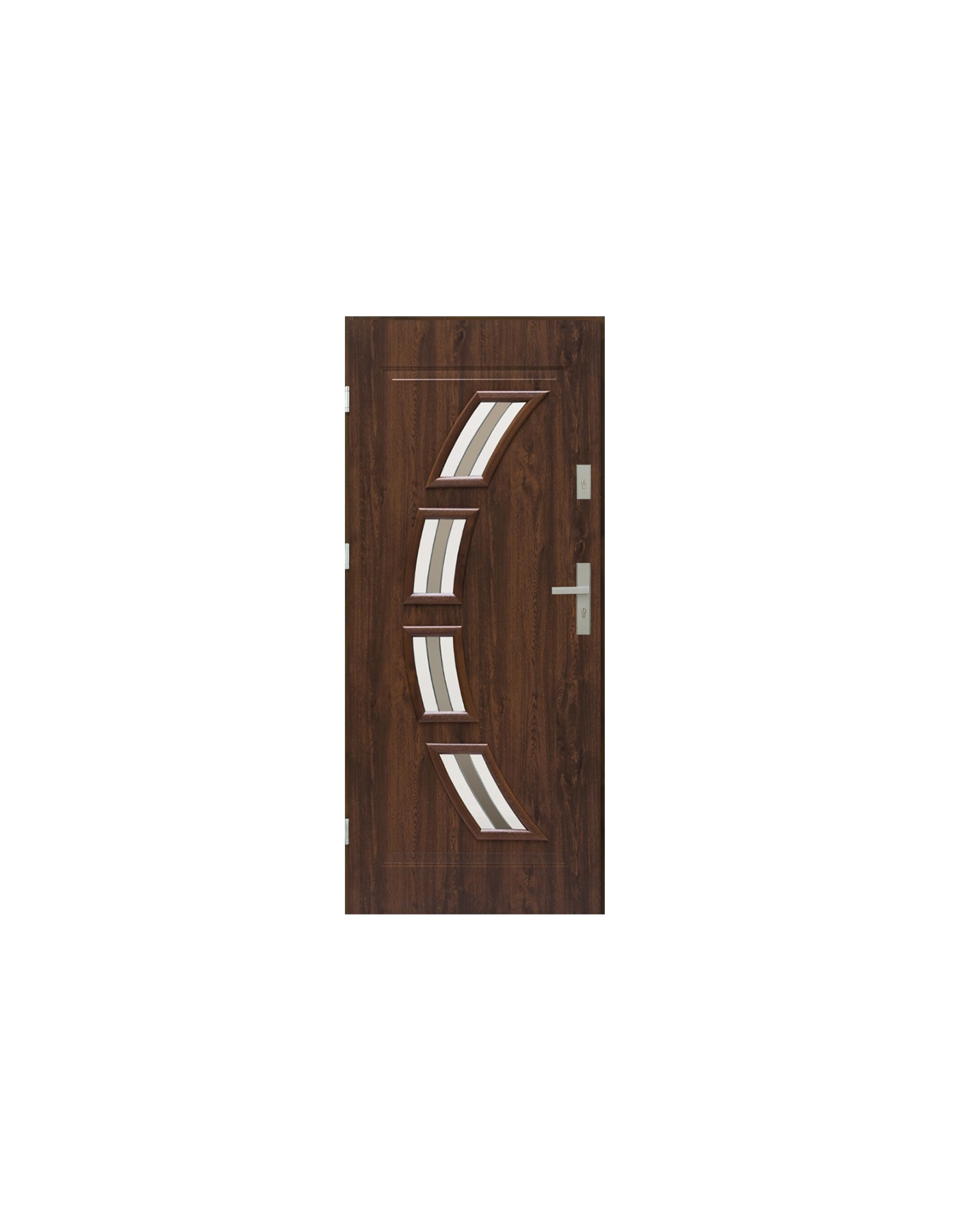 Podobnie jak inne oferowane modele dzięki zastosowanej wysokogatunkowej folii PCV charakteryzuje się wysoką odpornością na wilgoć i niekorzystne warunki atmosferyczne. Stalowa konstrukcja drzwi wzmocniona drewnianą ramą stanowi o wysokiej odporności skrzydła na odkształcenia.