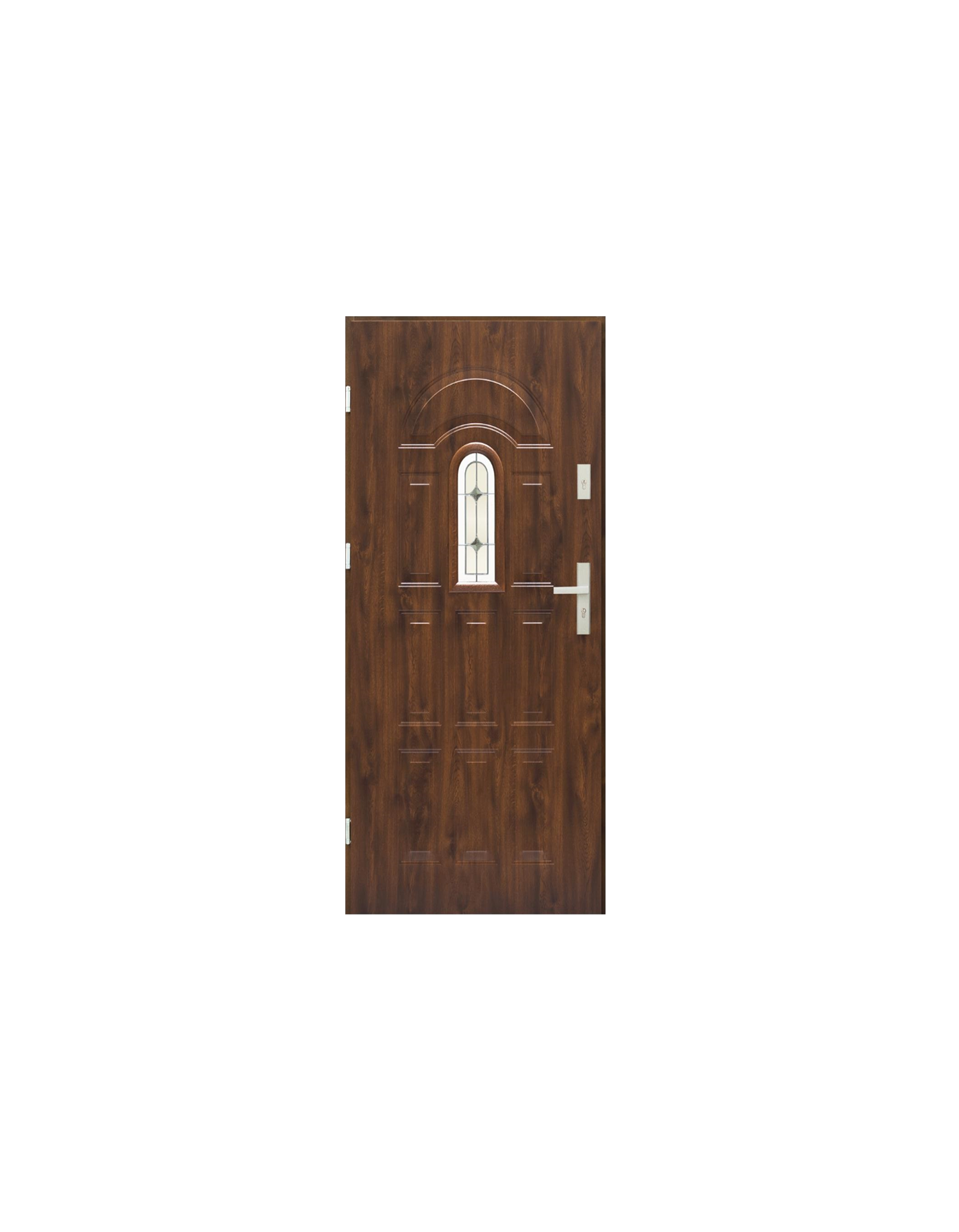 Jowisz to drzwi zewnętrzne, wewnątrzlokalowe, metalowe o gr. 56mm, charakteryzujące się estetycznym wyglądem, klasycznym wzorem oraz wielofunkcyjnym zastosowaniem. Nadają się do budynków jedno i wielorodzinnych, do pomieszczeń mieszkalnych, użyteczności publicznej, a także pomieszczeń przemysłowych. Skrzydło opiera się na metalowej konstrukcji uzupełnionej drewnianymi elementami w miejscach mocowania zamków oraz zawiasów. Całość gwarantuje dużą stabilność i wysoką odporność na odkształcenia. Uniwersalny wzór drzwi, różnorodność witraży, szeroka gama kolorystyczna, niezwykle odporne na warunki atmosferyczne okleiny PVC, dopasowane do koloru stolarki okiennej, wszystko to czyni te drzwi od dawna niezmiennie atrakcyjnymi.