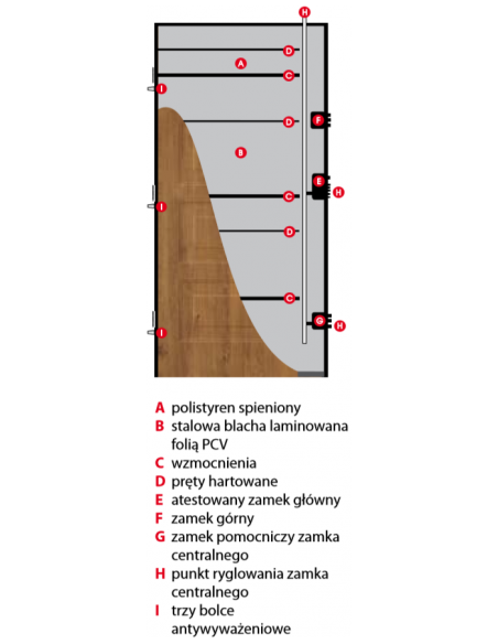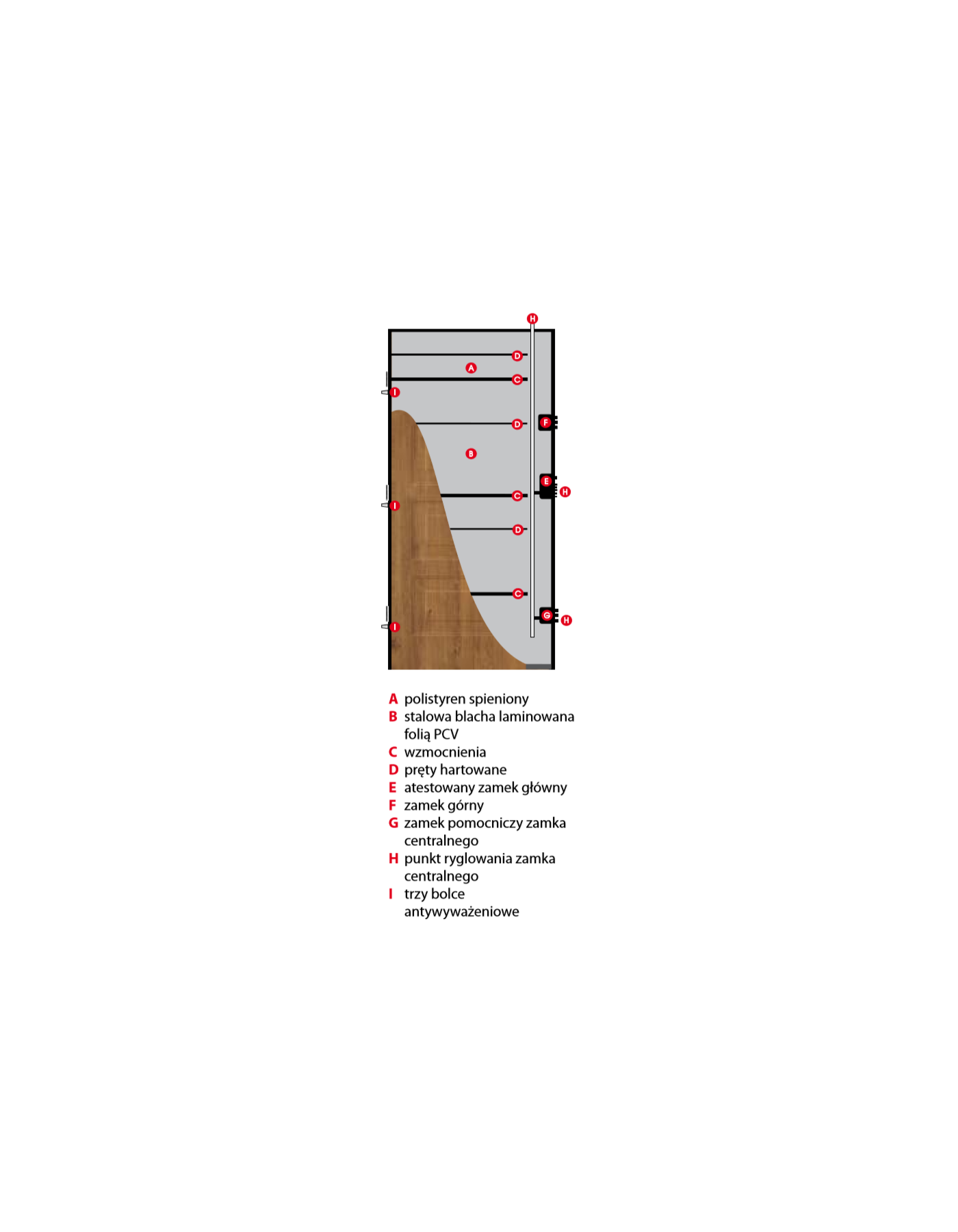- trzy zamki: zamek główny (pięć ruchomych rygli) w klasie 5;zamek górny (trzy ruchome rygle) w klasie 7;oraz zamek dodatkowy (trzy ruchome rygle)