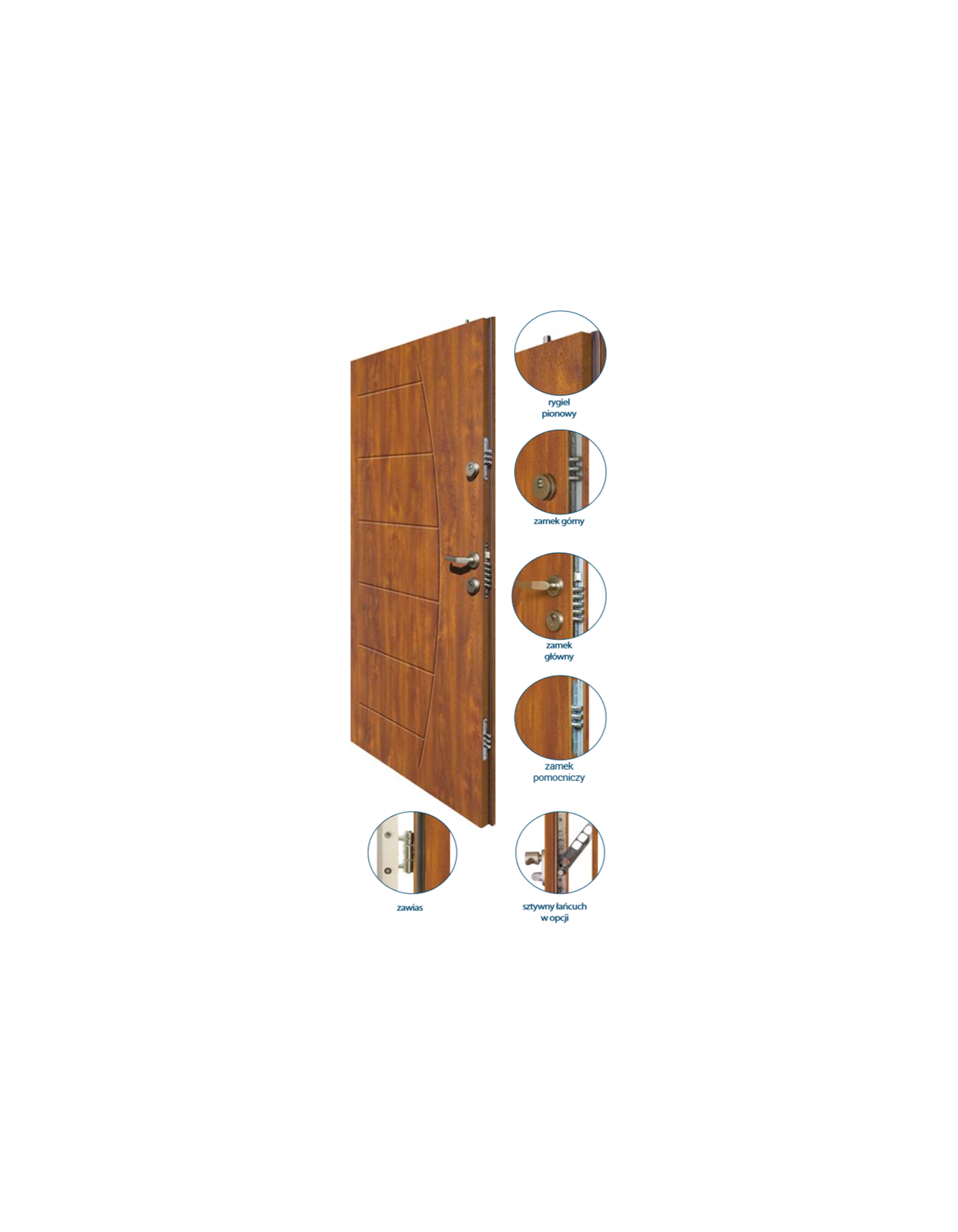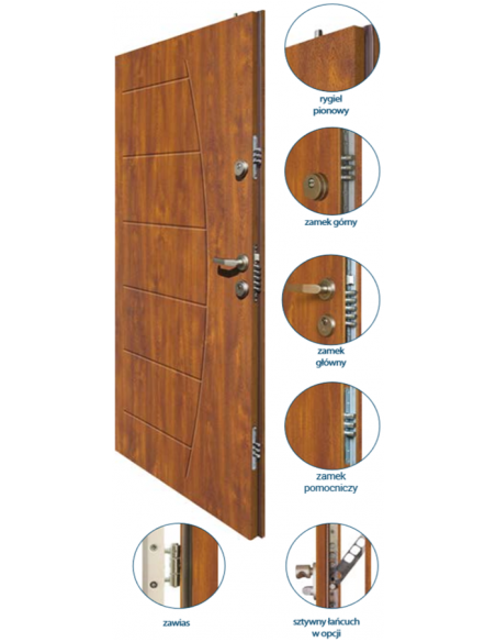 - trzy zamki: zamek główny (pięć ruchomych rygli) w klasie 5;zamek górny (trzy ruchome rygle) w klasie 7;oraz zamek dodatkowy (trzy ruchome rygle)