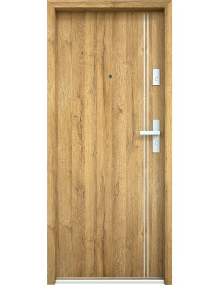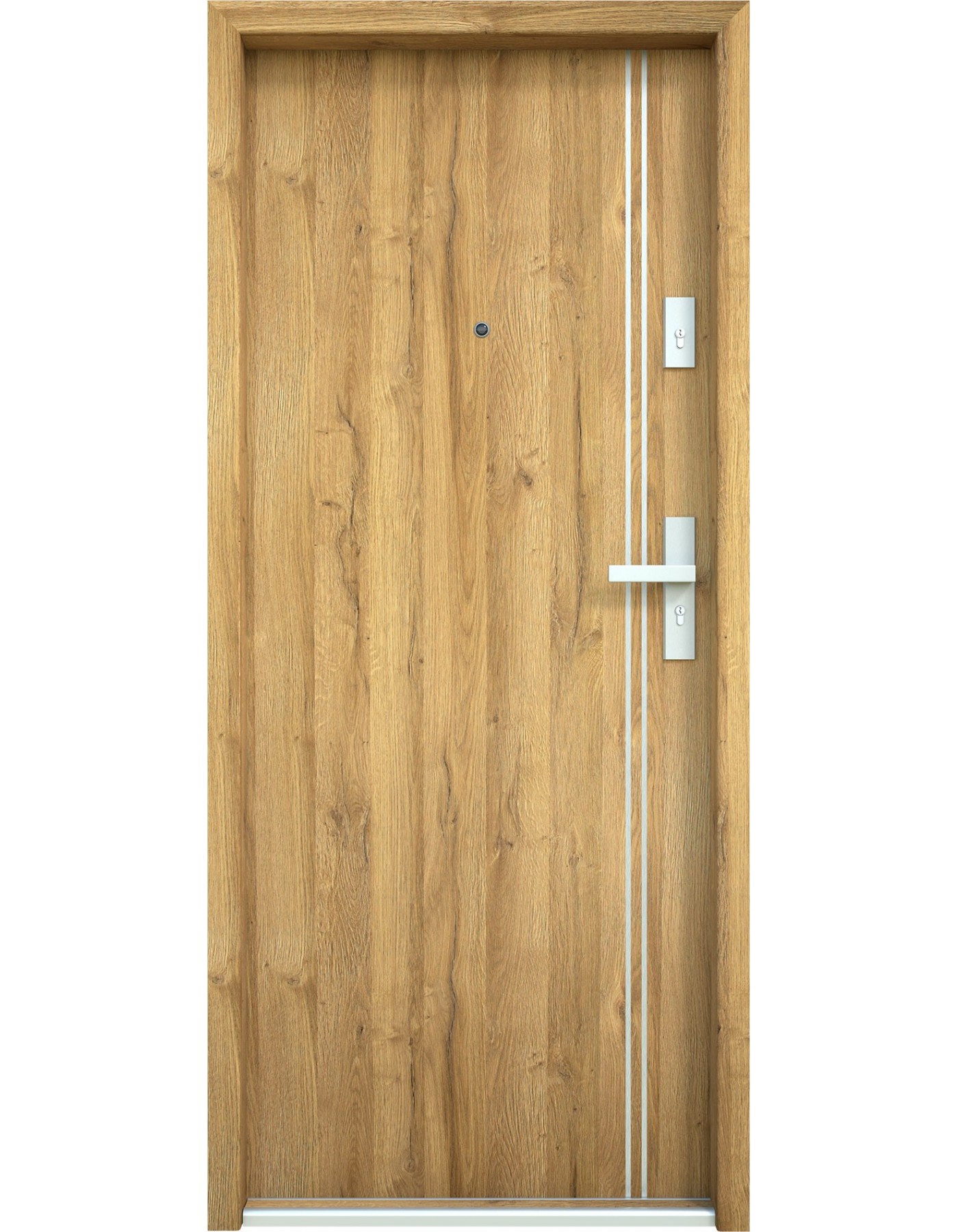 Do stworzenia ramy modelu wewnętrznego wejściowego do mieszkań Bastion posłużyło nam najwyższej jakości drewno iglaste. Całość wypełniona została płytą wiórową. Skrzydło zostało oklejone płytą MDF frezowaną, którą z kolei pokryliśmy wytrzymałą folią dekoracyjną PVC o grubości 0,35 mm. Zaufaliśmy technologii okleinowania bez łączenia na krawędziach przylgi, która gwarantuje nadzwyczajną wytrzymałość okleiny oraz estetykę wykończenia. Te drzwi posłużą Państwu przez lata.
