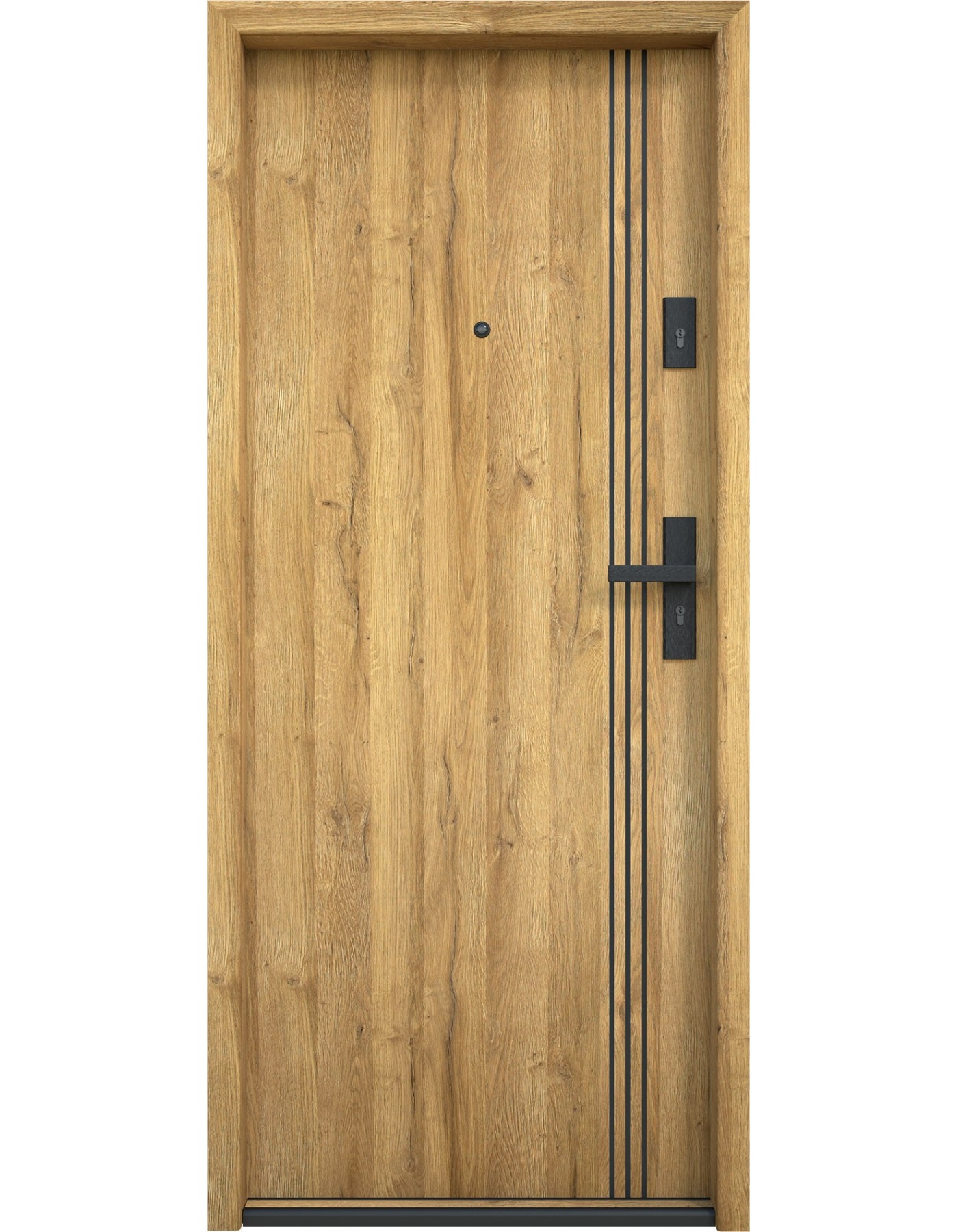 Model Bastion B-71 przyciąga oko trzema gustownymi listewkami z aluminium, które zostały umiejscowione bliżej klamki. Te trzy wstawki w kolorze czarnym to propozycja łącząca elegancję z nowoczesnością, kierowana do najbardziej wymagających klientów.