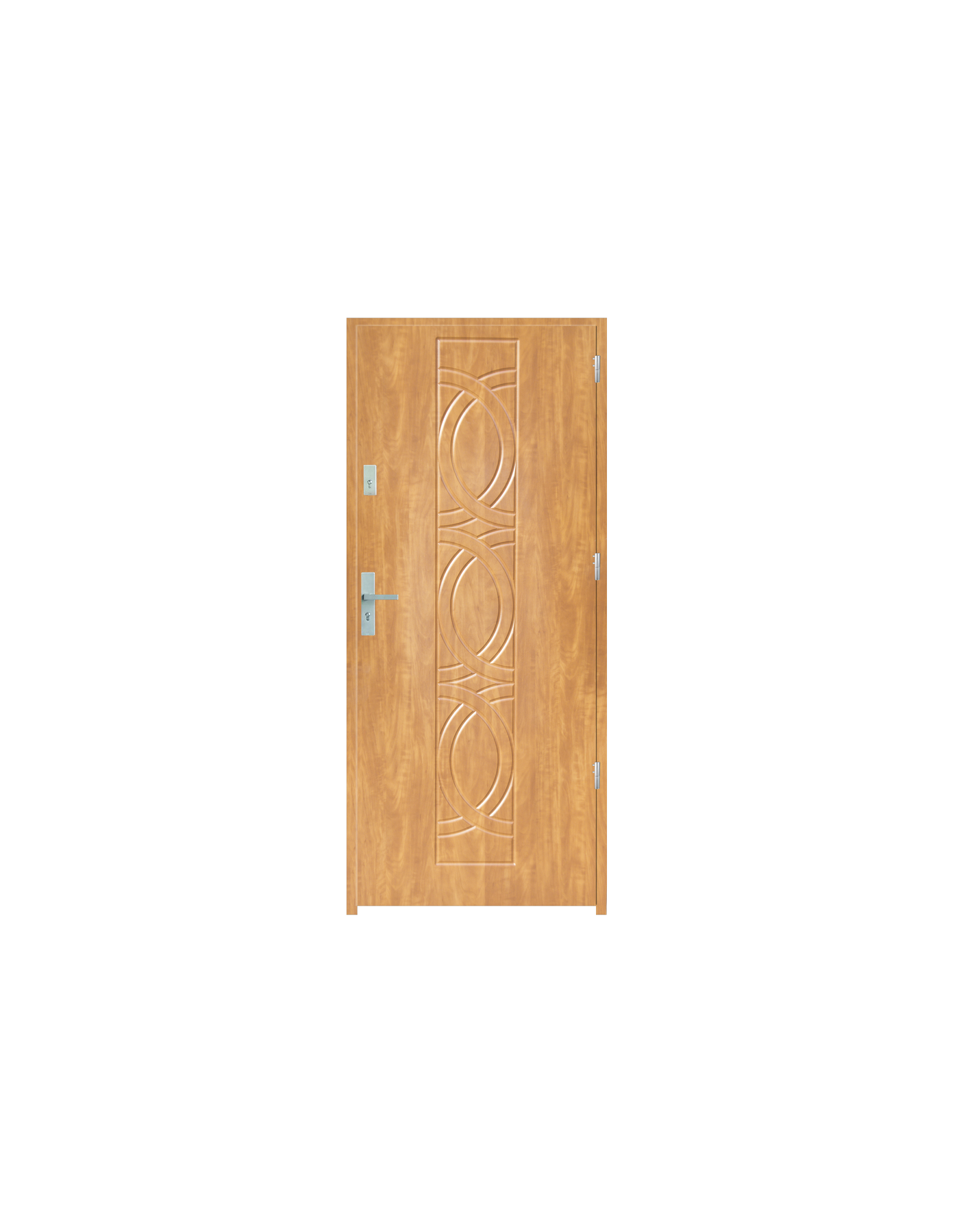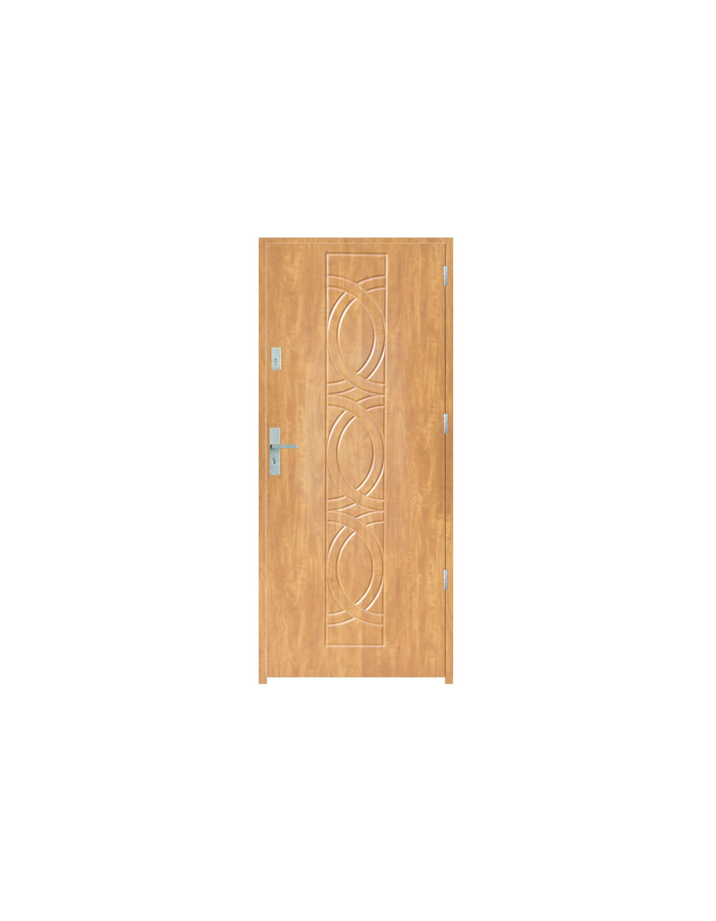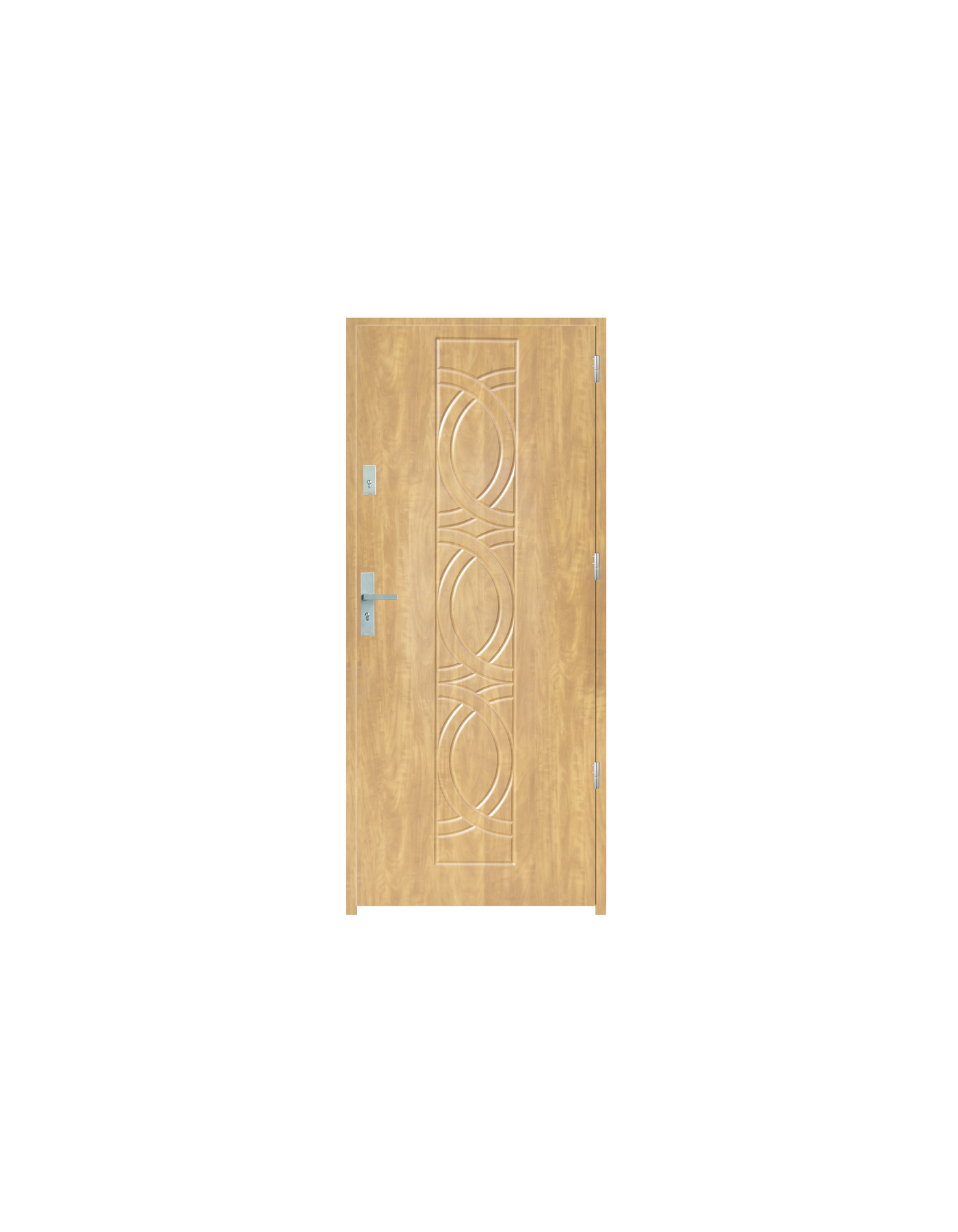 Skrzydło drzwiowe wykonane z klejonego wzdłuż i w poprzek drewna sosnowego. Jego wypełnienie stanowi płyta wiórowa pełna i pianka wyciszająca. Takie wykonanie zwiększa wytrzymałość konstrukcji.
