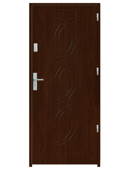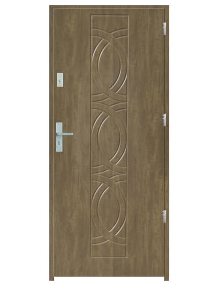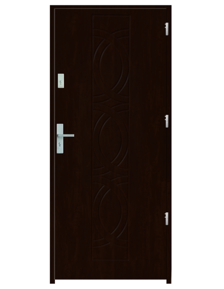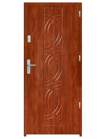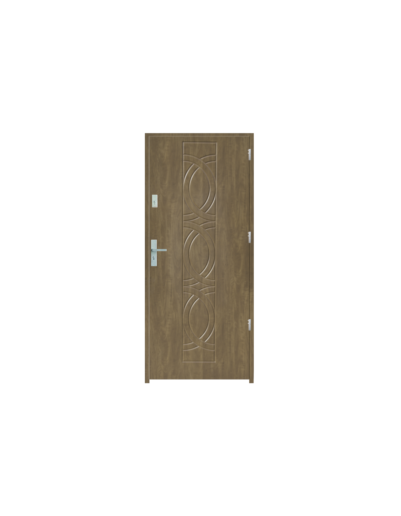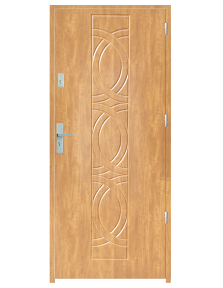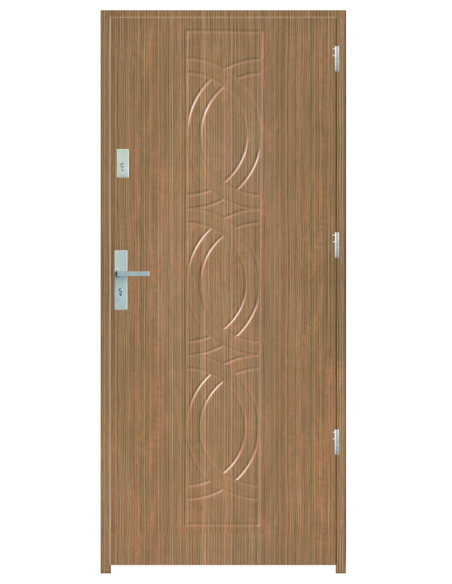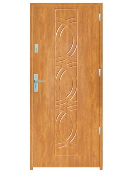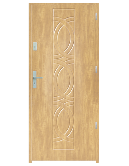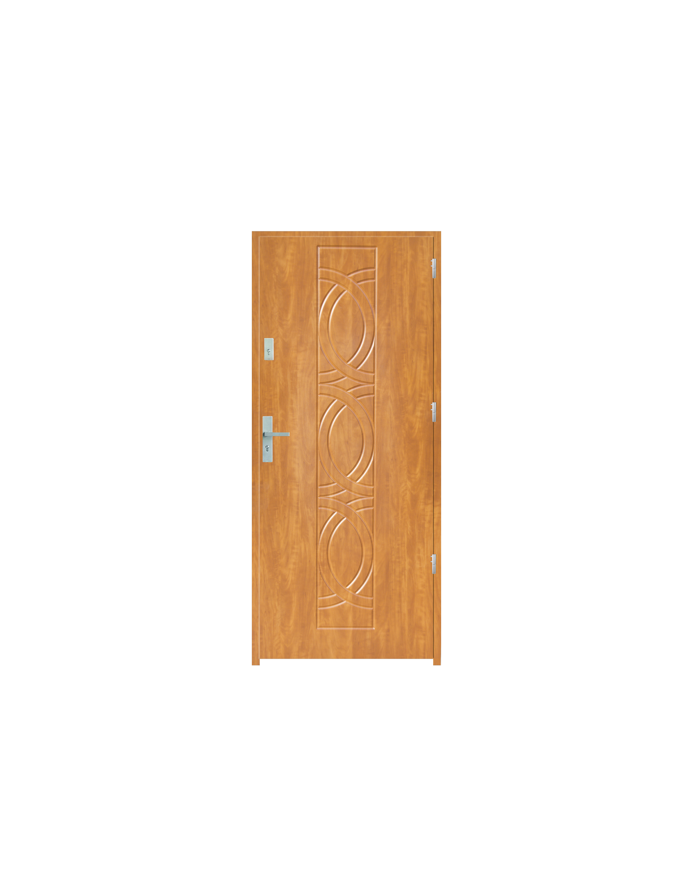 Skrzydło drzwiowe wykonane z klejonego wzdłuż i w poprzek drewna sosnowego. Jego wypełnienie stanowi płyta wiórowa pełna i pianka wyciszająca. Takie wykonanie zwiększa wytrzymałość konstrukcji.