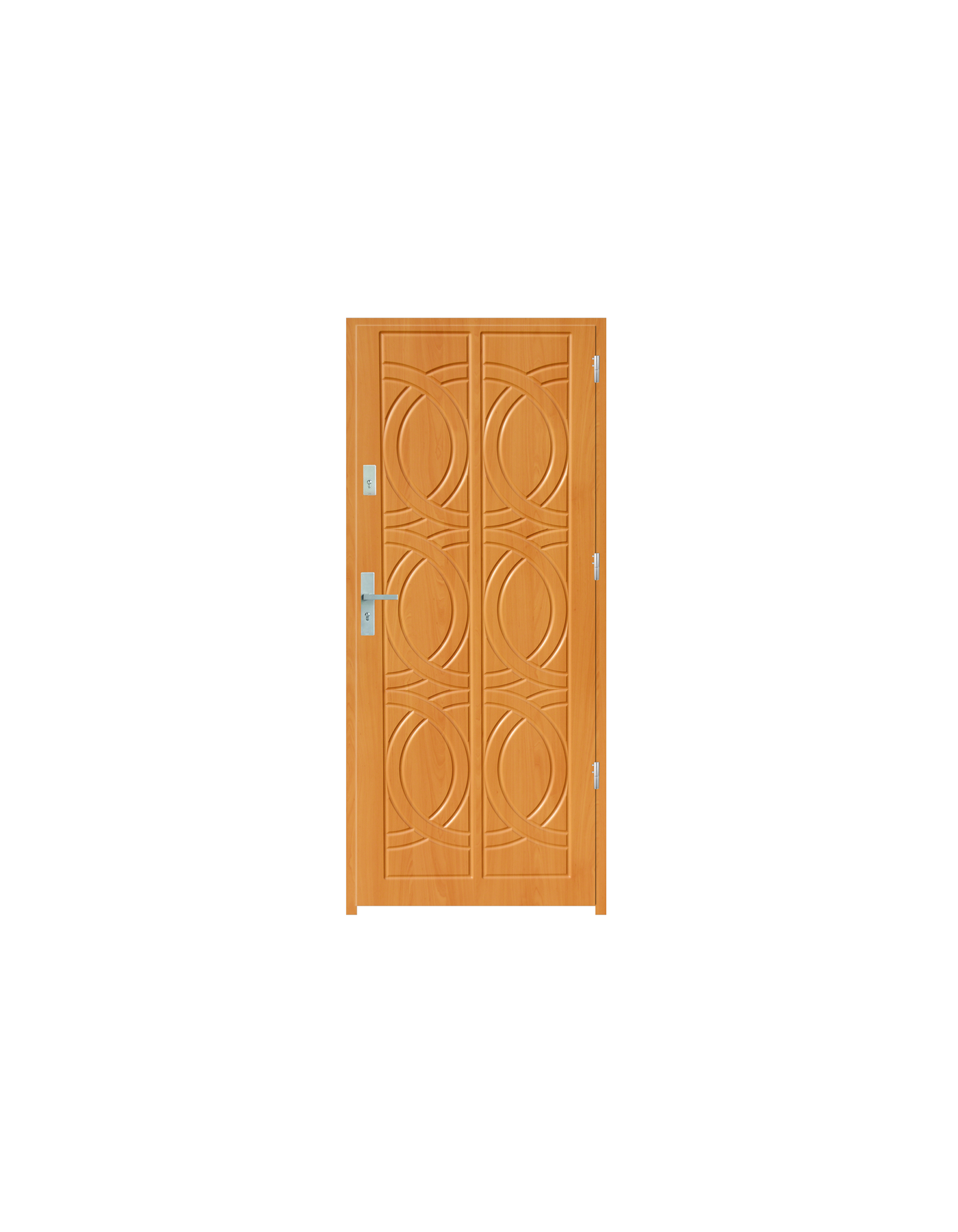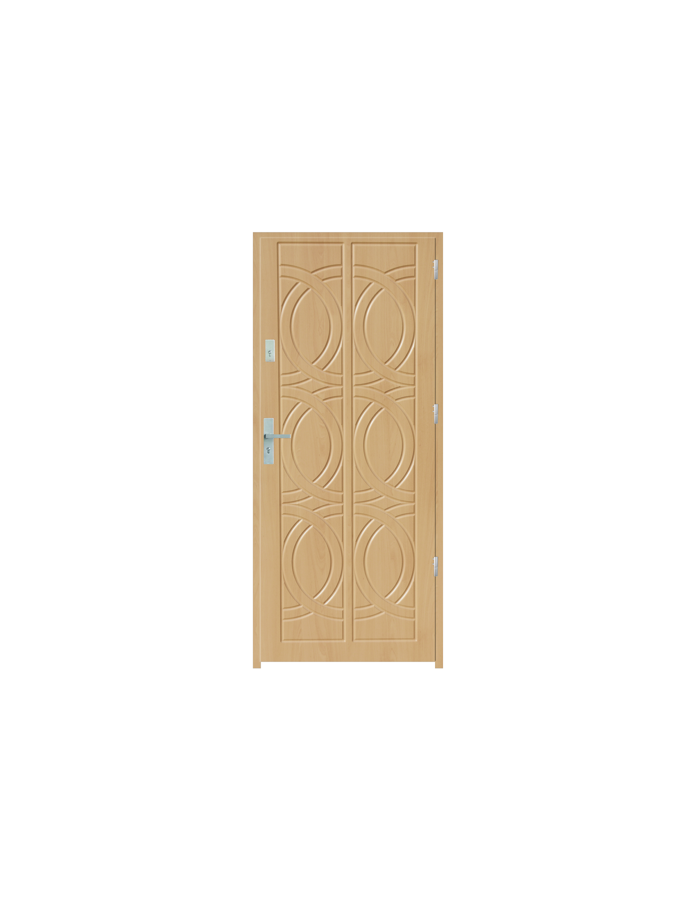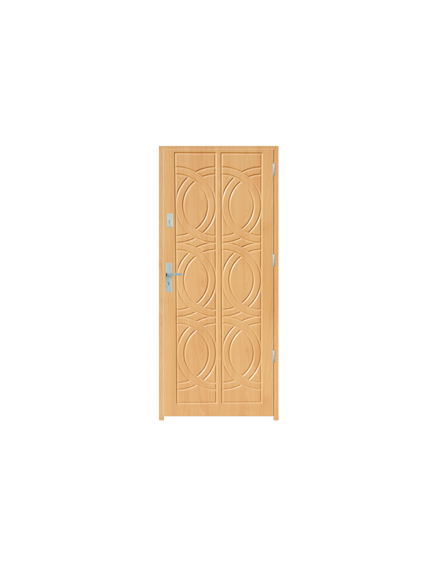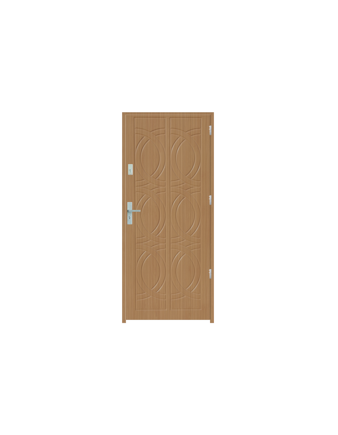 Skrzydło drzwiowe wykonane z klejonego wzdłuż i w poprzek drewna sosnowego. Jego wypełnienie stanowi płyta wiórowa pełna i pianka wyciszająca. Takie wykonanie zwiększa wytrzymałość konstrukcji.