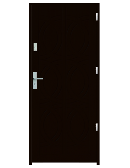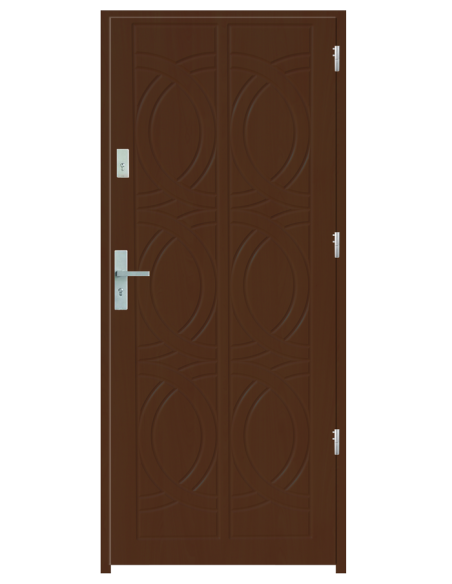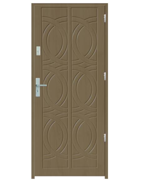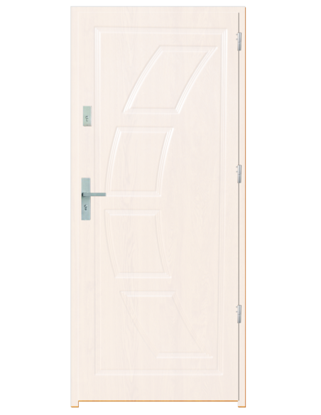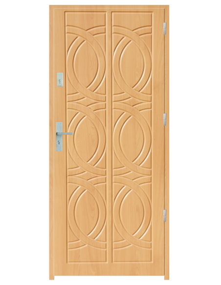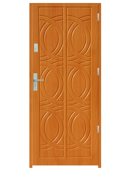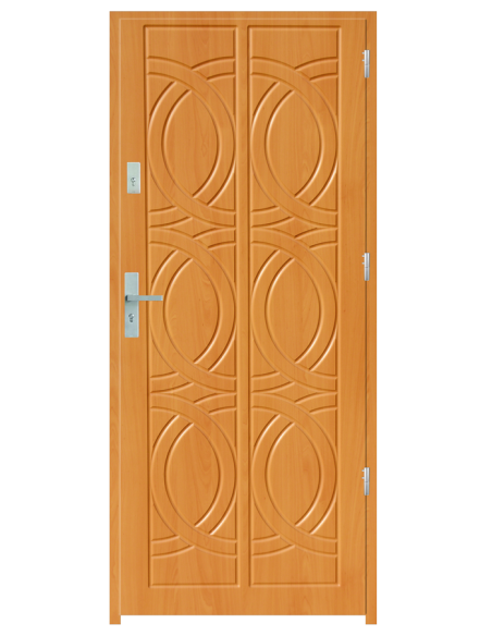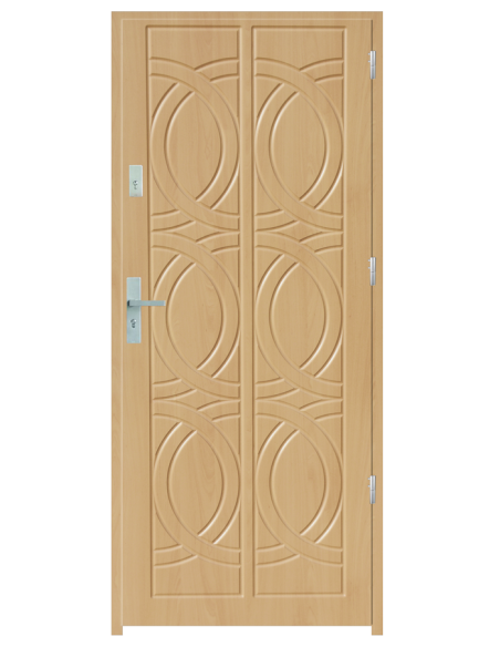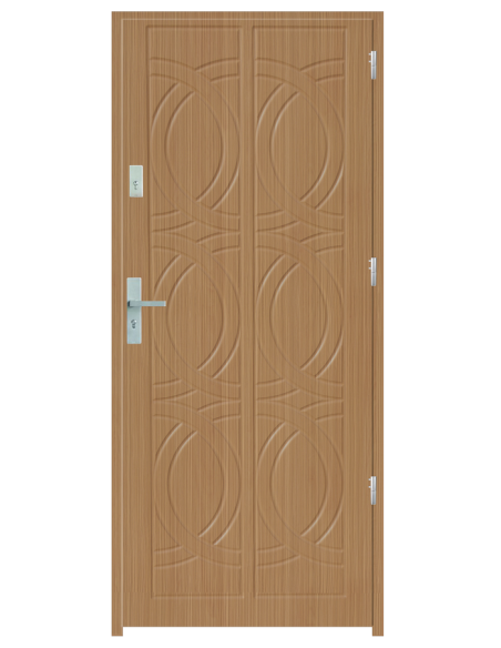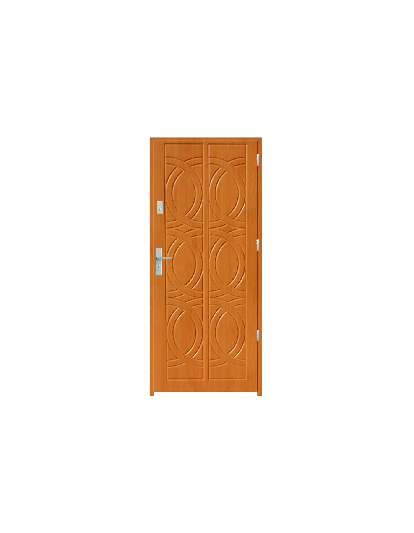 Skrzydło drzwiowe wykonane z klejonego wzdłuż i w poprzek drewna sosnowego. Jego wypełnienie stanowi płyta wiórowa pełna i pianka wyciszająca. Takie wykonanie zwiększa wytrzymałość konstrukcji.