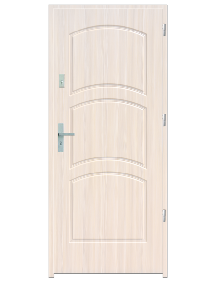 Skrzydło drzwiowe wykonane z klejonego wzdłuż i w poprzek drewna sosnowego. Jego wypełnienie stanowi płyta wiórowa pełna i pianka wyciszająca. Takie wykonanie zwiększa wytrzymałość konstrukcji.