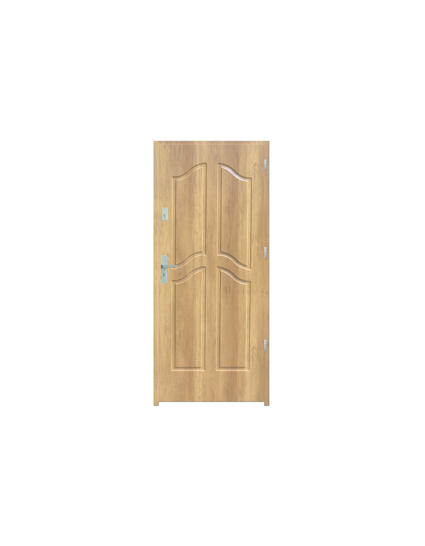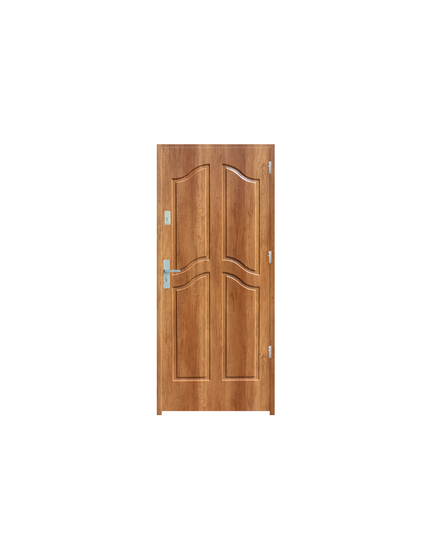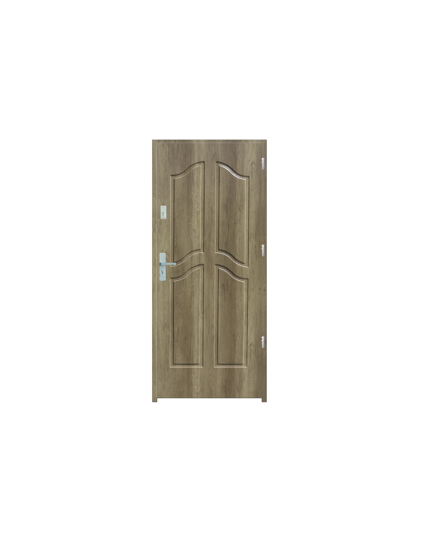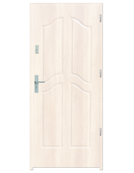 Skrzydło drzwiowe wykonane z klejonego wzdłuż i w poprzek drewna sosnowego. Jego wypełnienie stanowi płyta wiórowa pełna i pianka wyciszająca. Takie wykonanie zwiększa wytrzymałość konstrukcji.