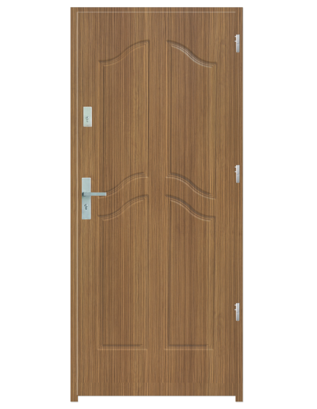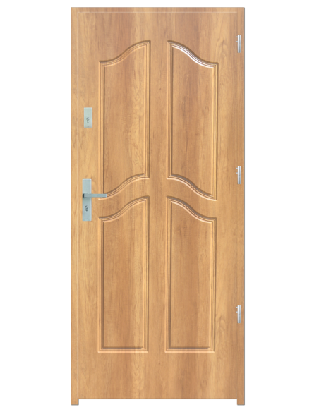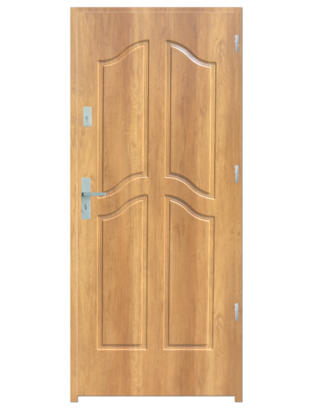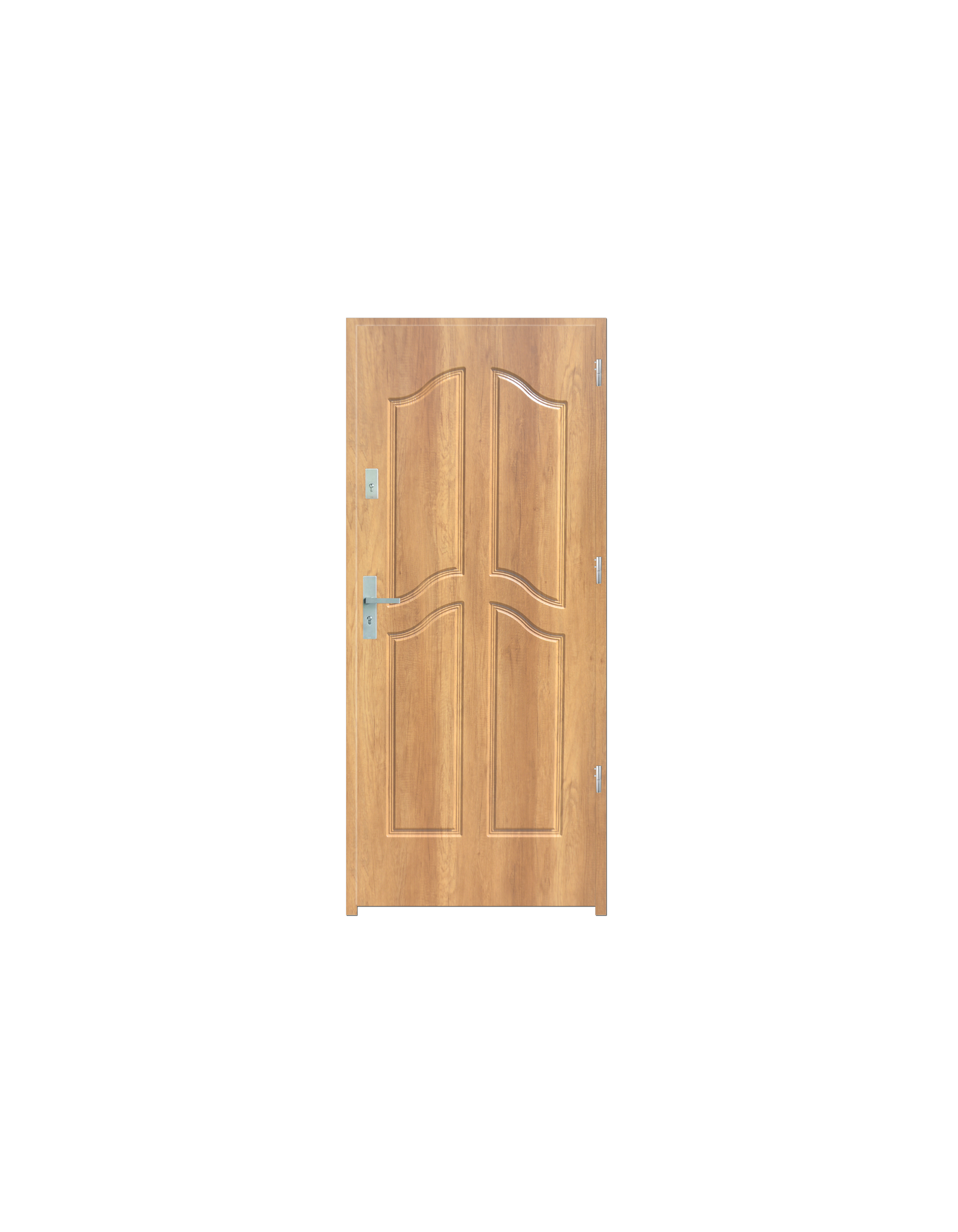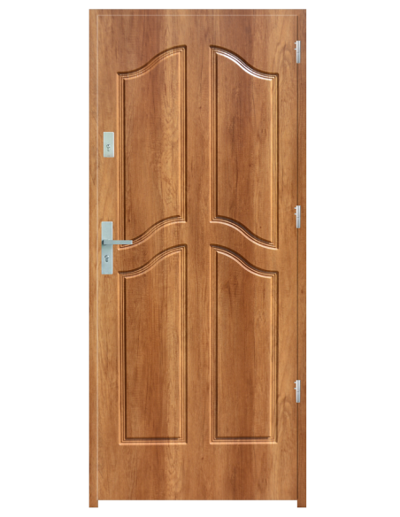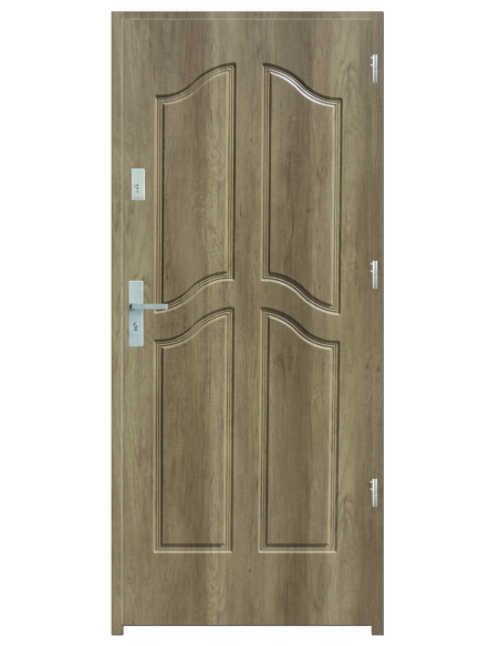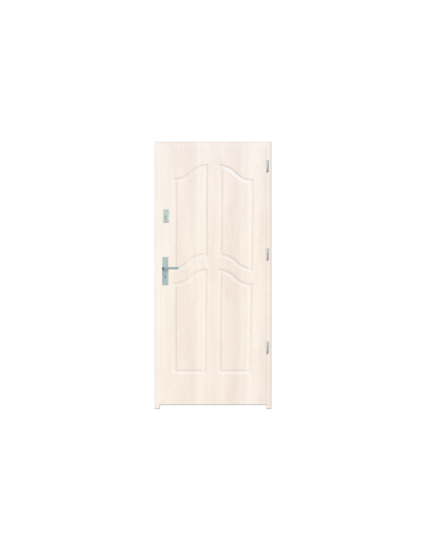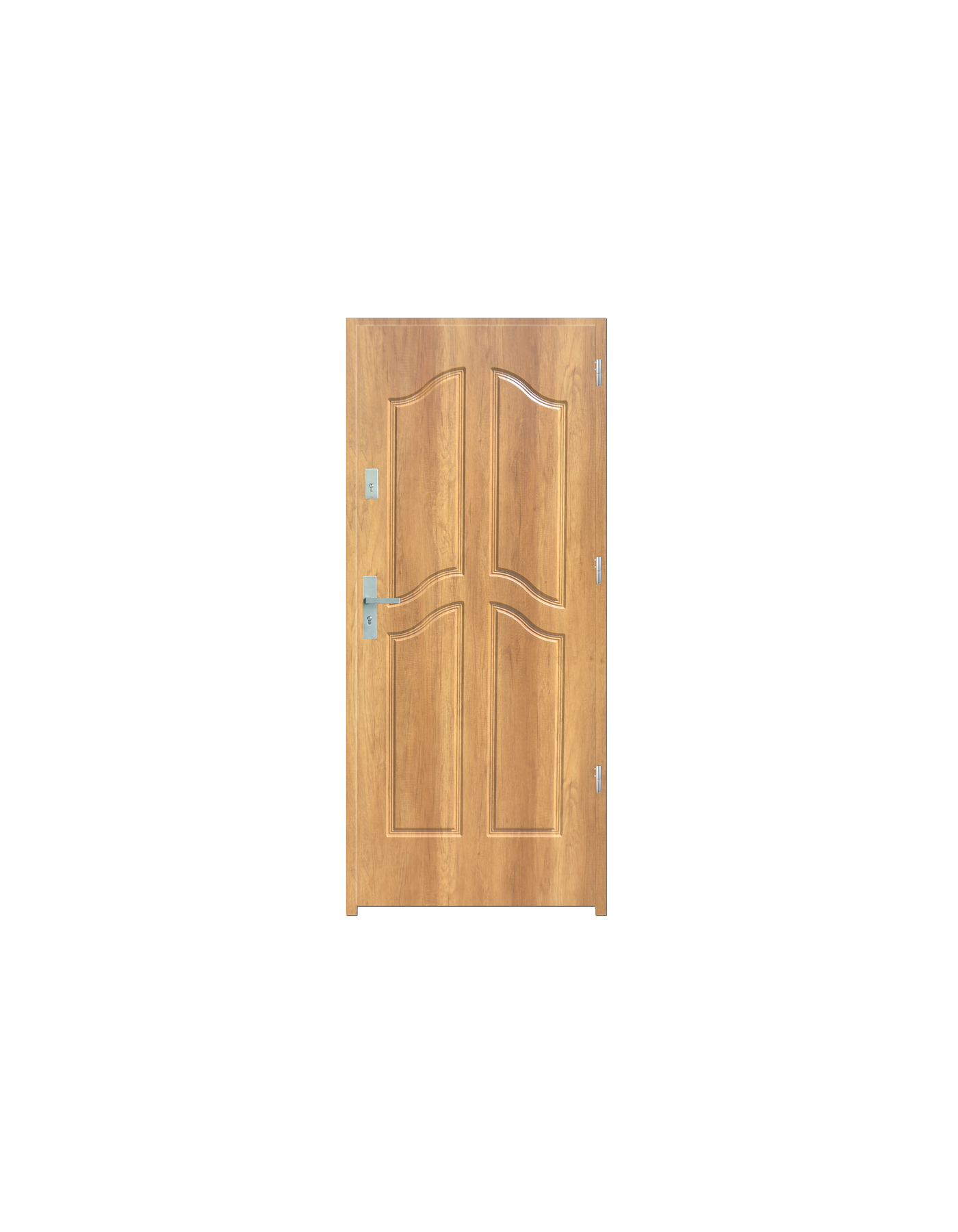 Skrzydło drzwiowe wykonane z klejonego wzdłuż i w poprzek drewna sosnowego. Jego wypełnienie stanowi płyta wiórowa pełna i pianka wyciszająca. Takie wykonanie zwiększa wytrzymałość konstrukcji.