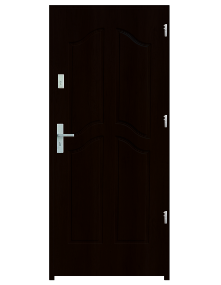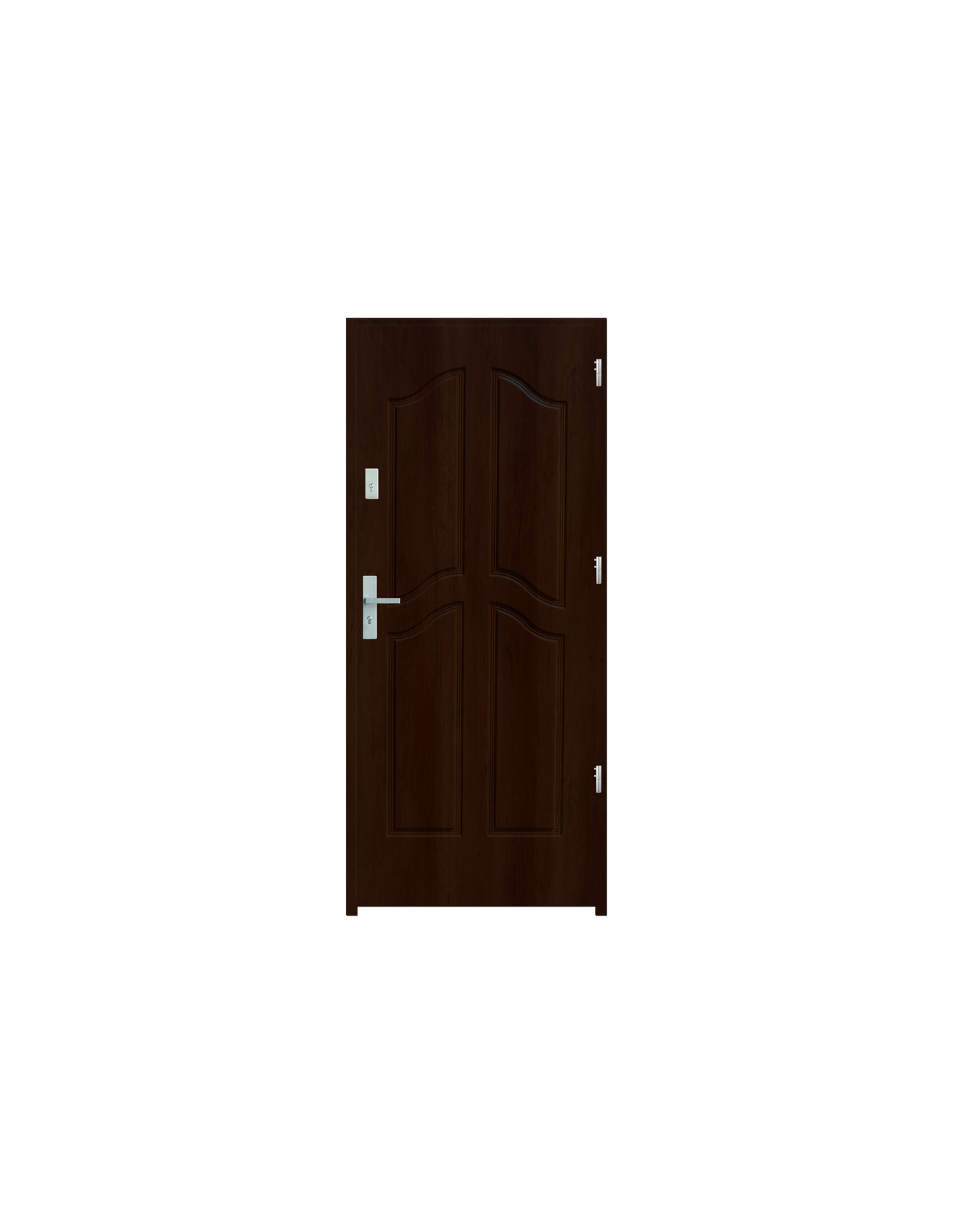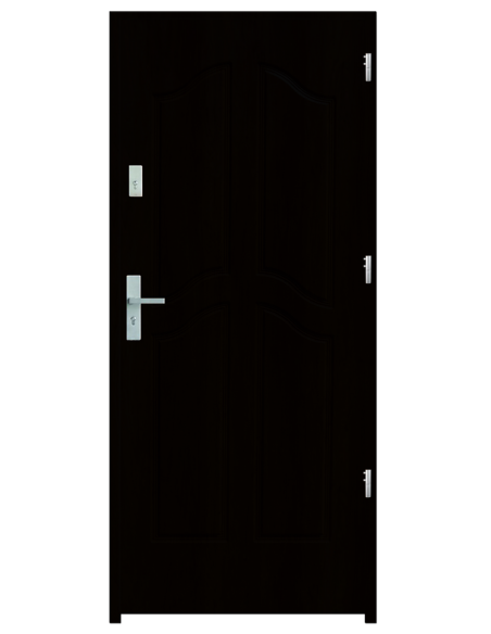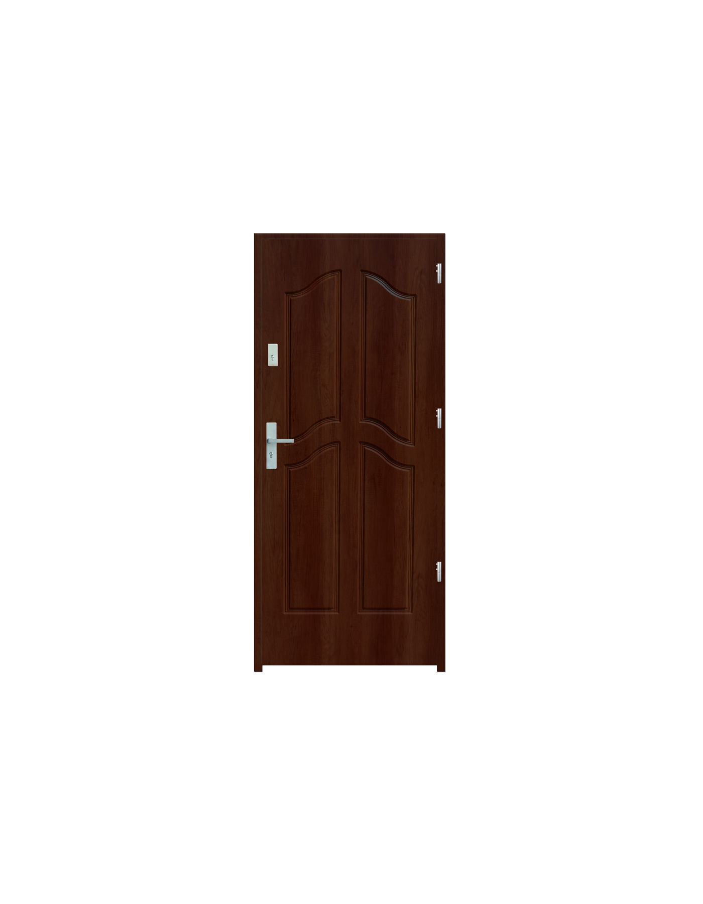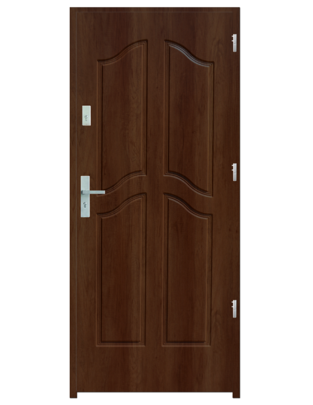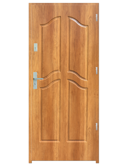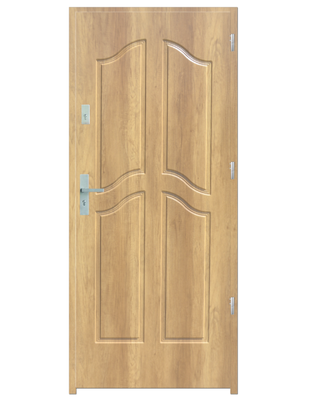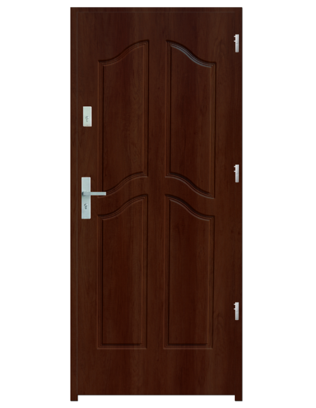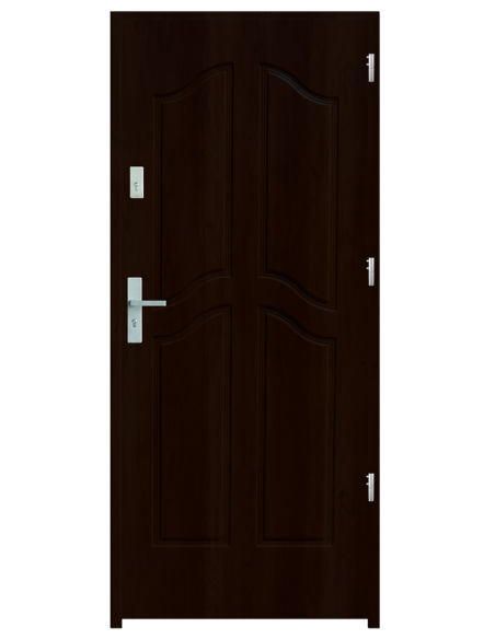 Skrzydło drzwiowe wykonane z klejonego wzdłuż i w poprzek drewna sosnowego. Jego wypełnienie stanowi płyta wiórowa pełna i pianka wyciszająca. Takie wykonanie zwiększa wytrzymałość konstrukcji.