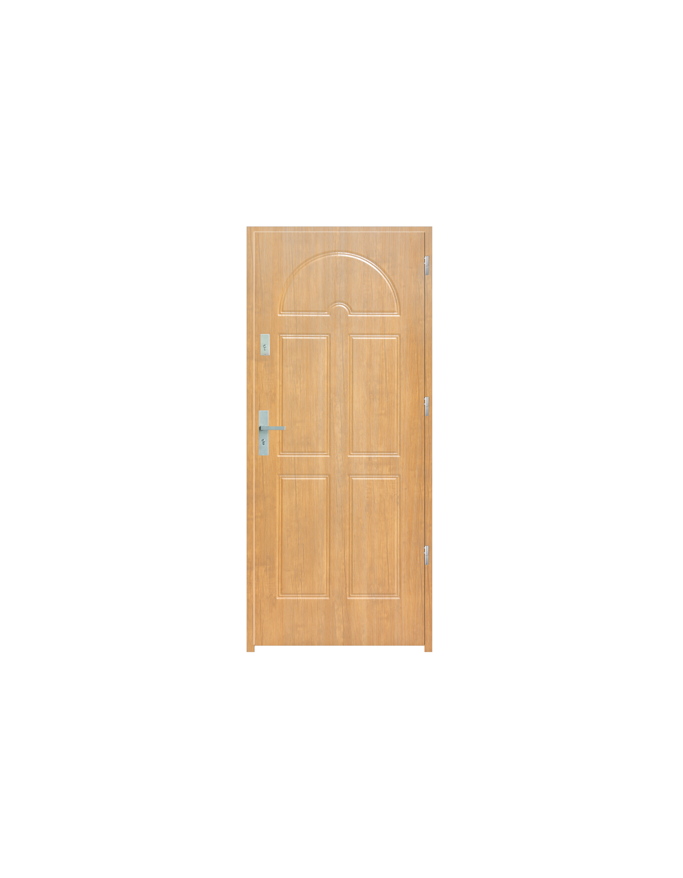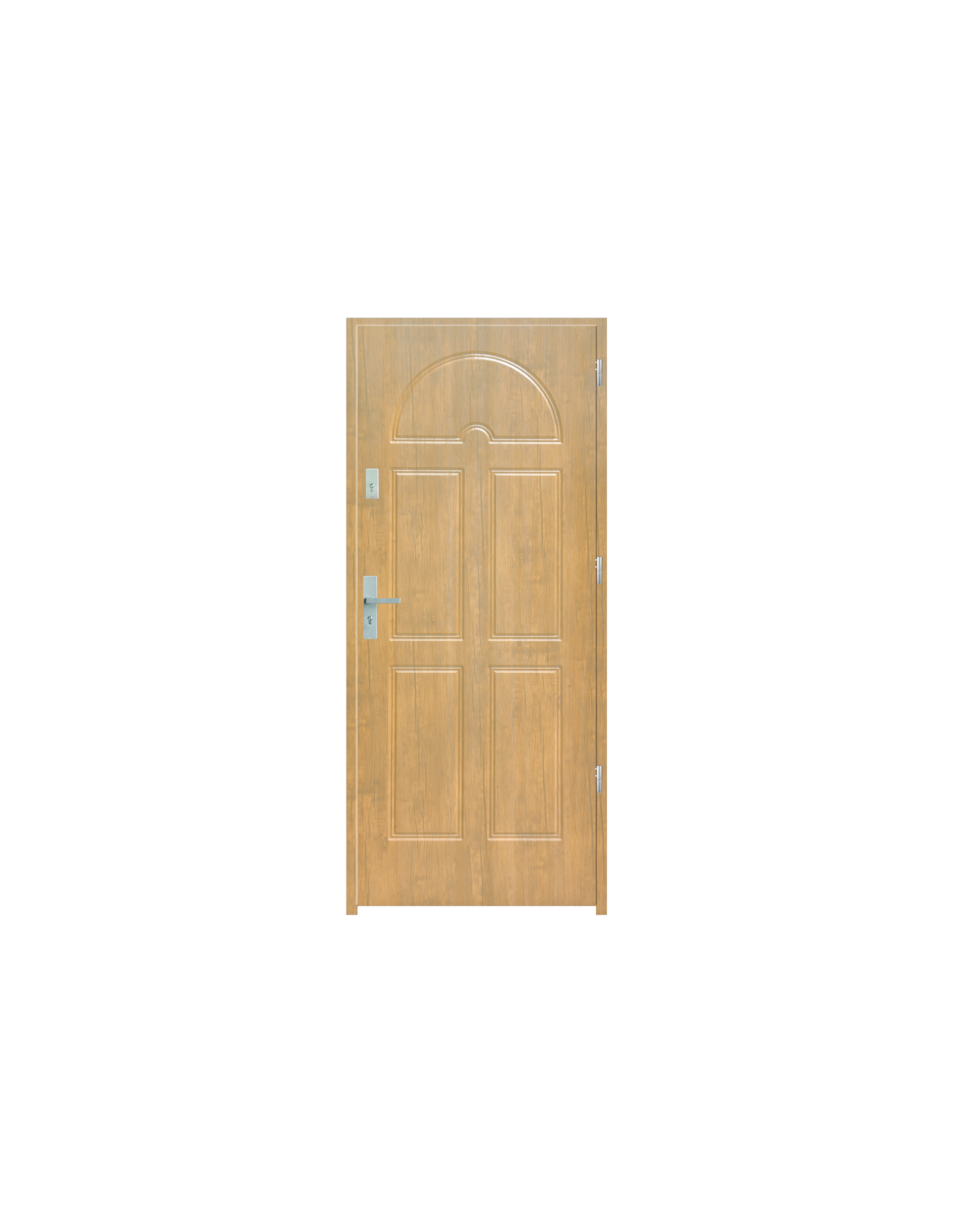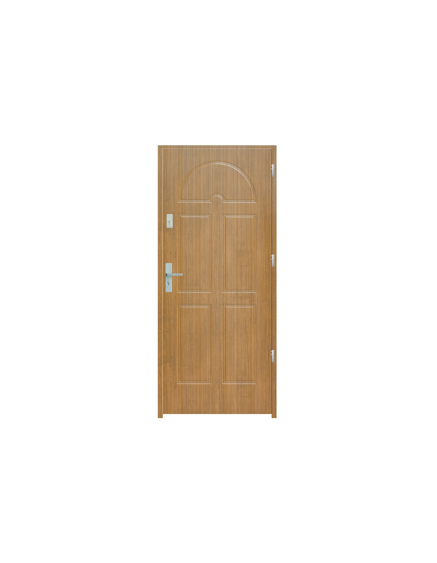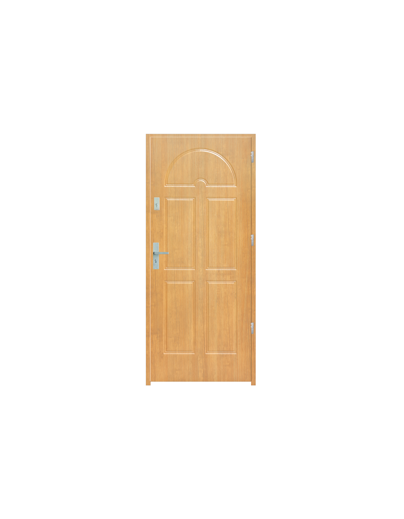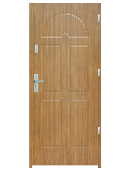 Skrzydło drzwiowe wykonane z klejonego wzdłuż i w poprzek drewna sosnowego. Jego wypełnienie stanowi płyta wiórowa pełna i pianka wyciszająca. Takie wykonanie zwiększa wytrzymałość konstrukcji.