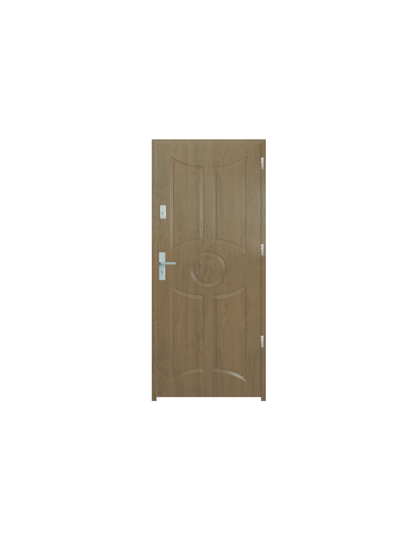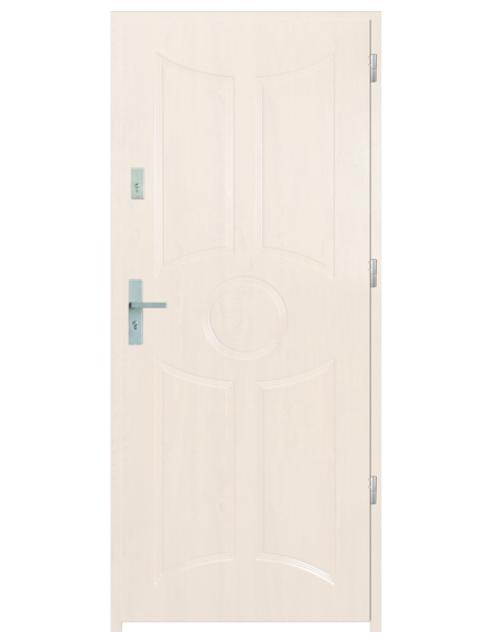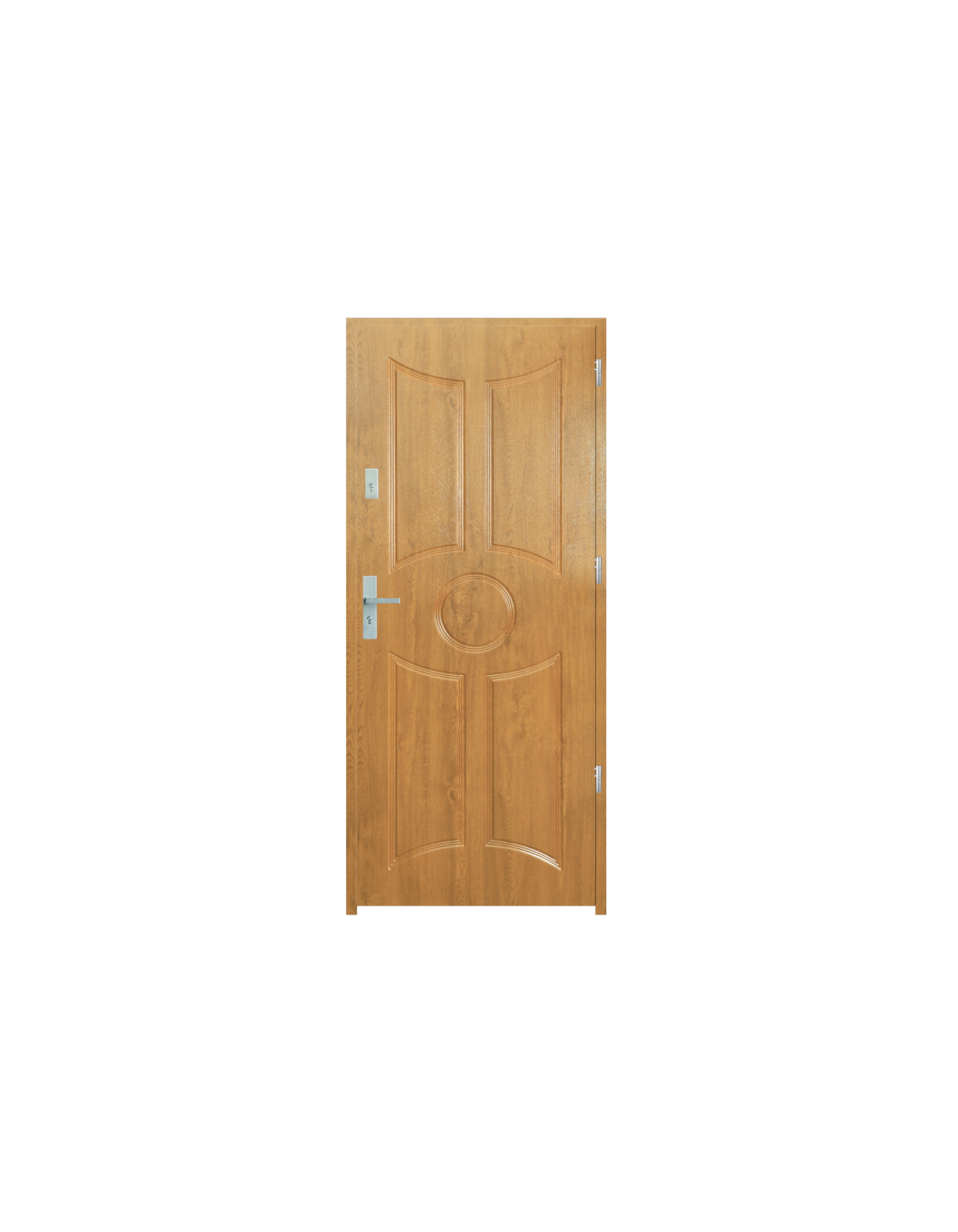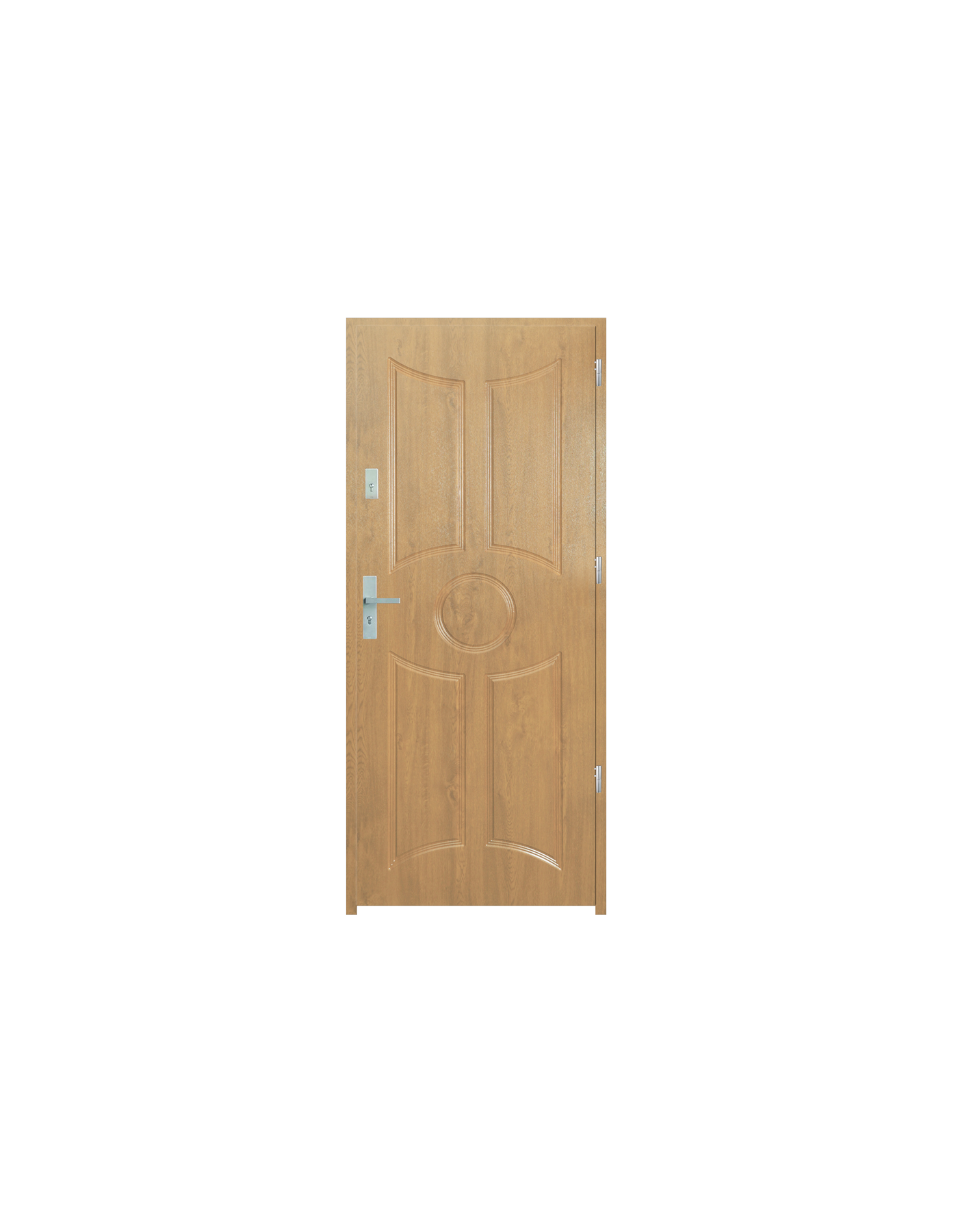 Skrzydło drzwiowe wykonane z klejonego wzdłuż i w poprzek drewna sosnowego. Jego wypełnienie stanowi płyta wiórowa pełna i pianka wyciszająca. Takie wykonanie zwiększa wytrzymałość konstrukcji.