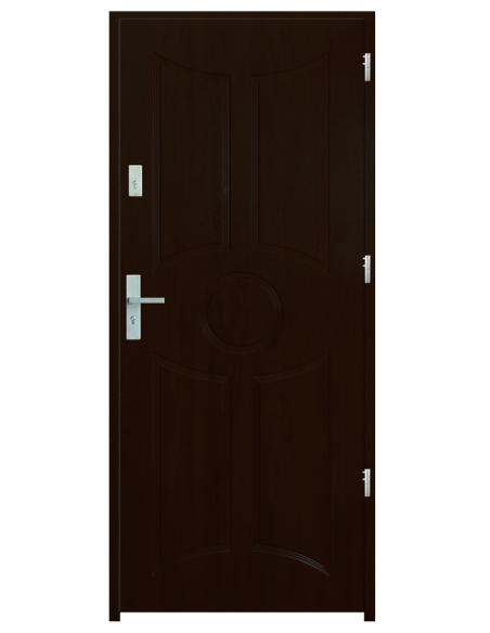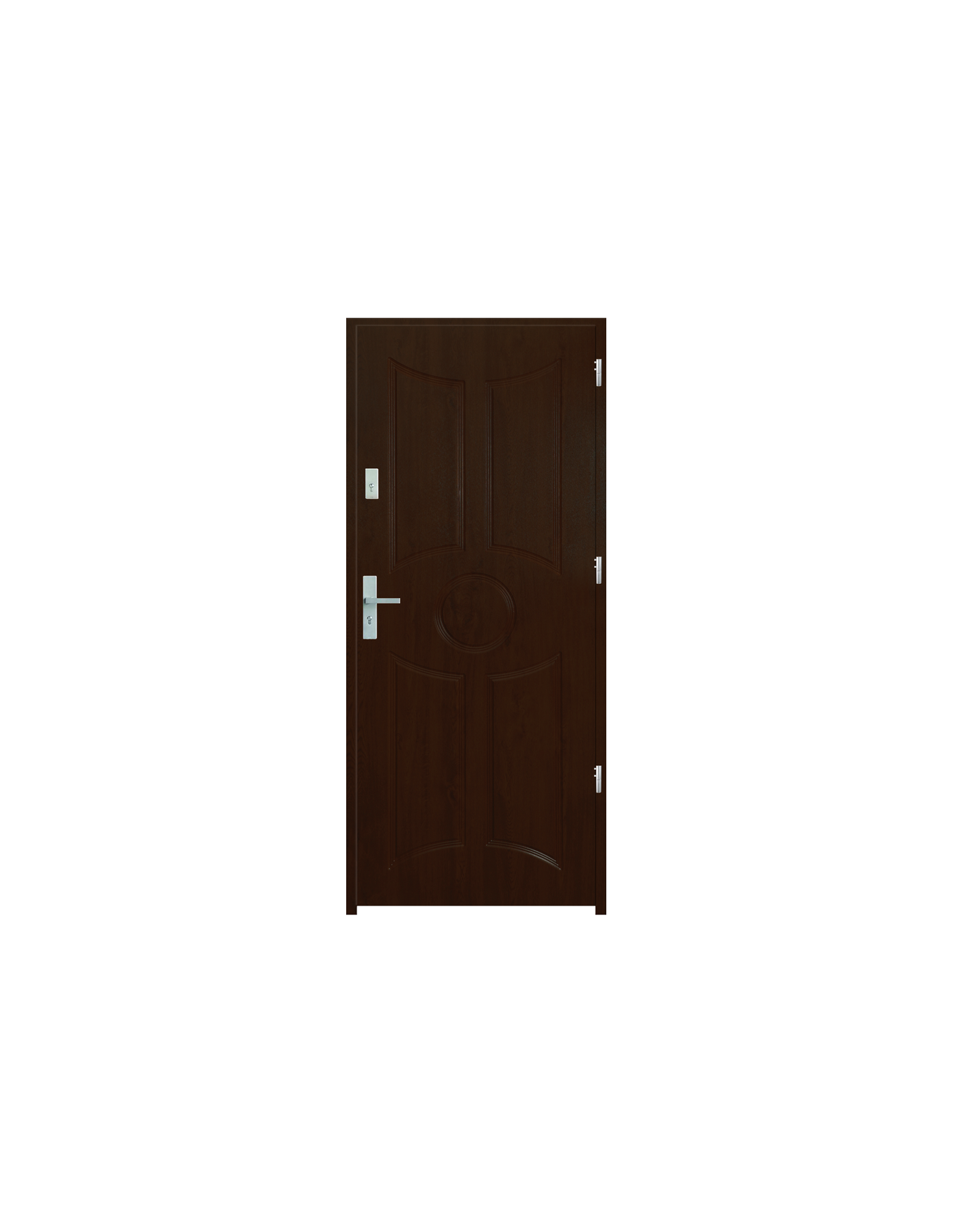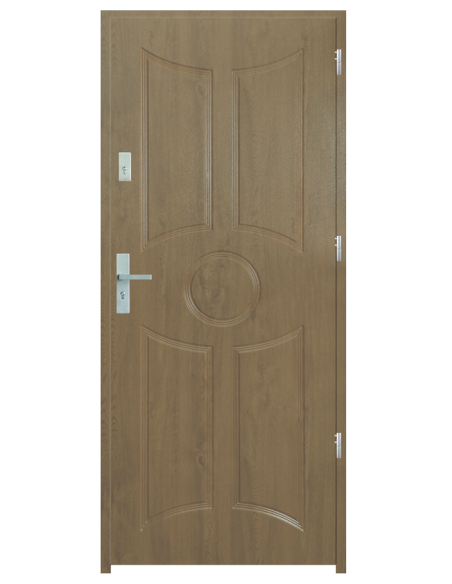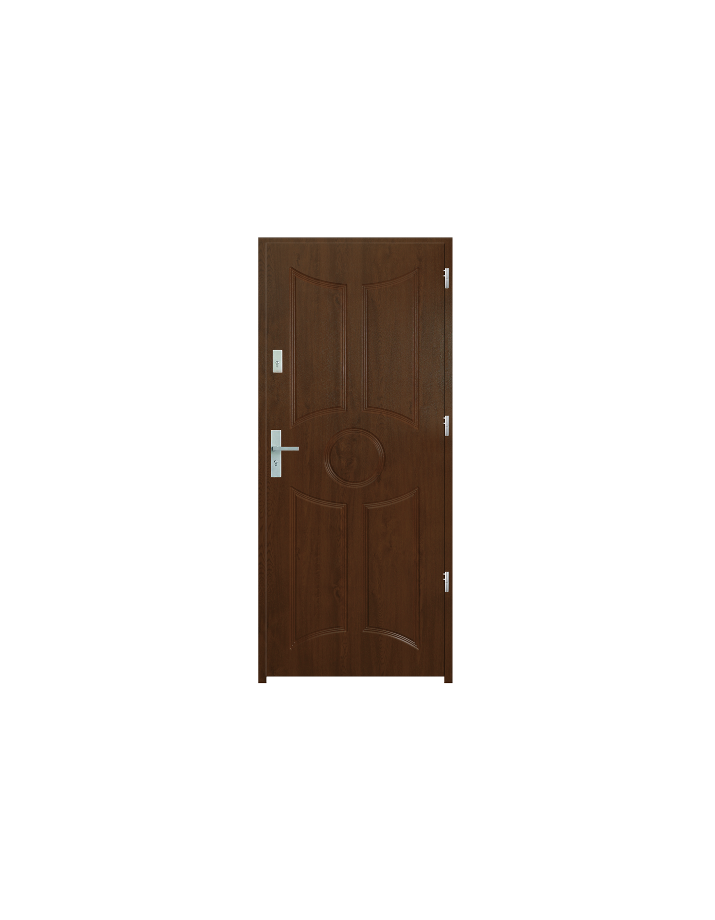 Skrzydło drzwiowe wykonane z klejonego wzdłuż i w poprzek drewna sosnowego. Jego wypełnienie stanowi płyta wiórowa pełna i pianka wyciszająca. Takie wykonanie zwiększa wytrzymałość konstrukcji.