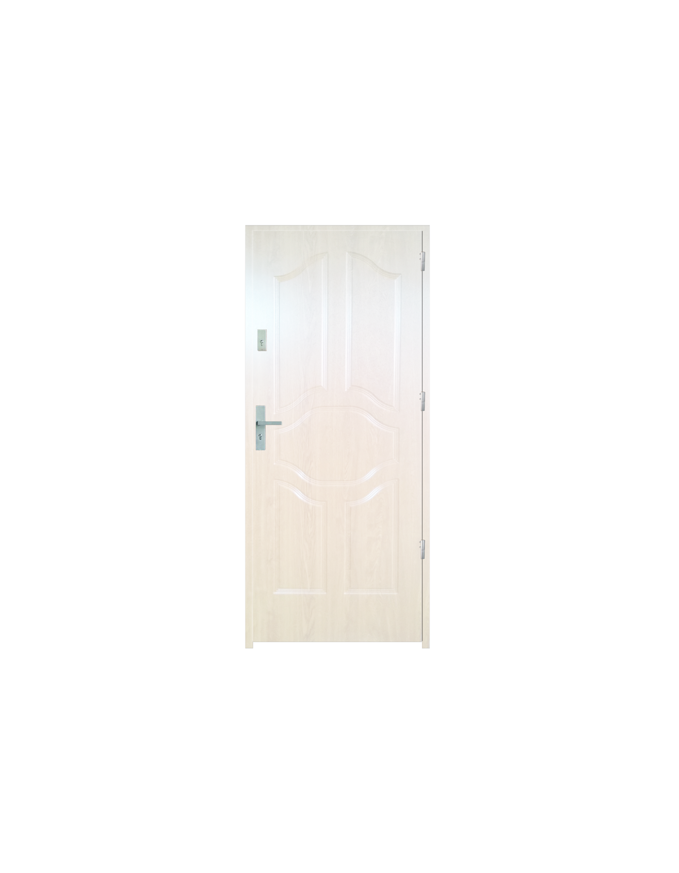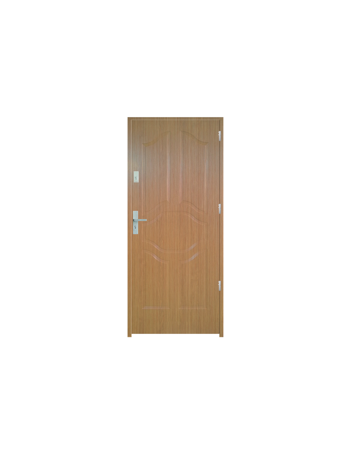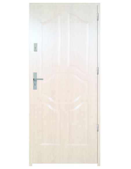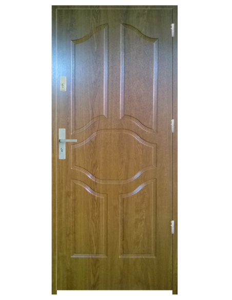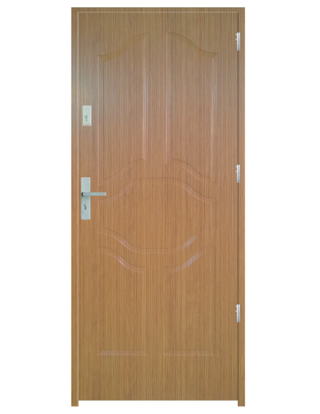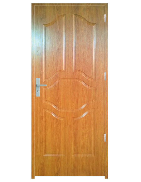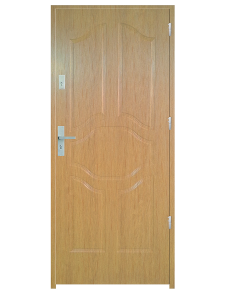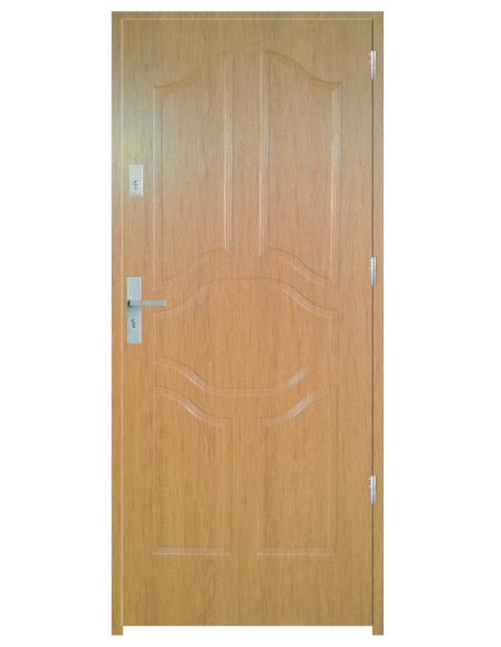 Skrzydło drzwiowe wykonane z klejonego wzdłuż i w poprzek drewna sosnowego. Jego wypełnienie stanowi płyta wiórowa pełna i pianka wyciszająca. Takie wykonanie zwiększa wytrzymałość konstrukcji.