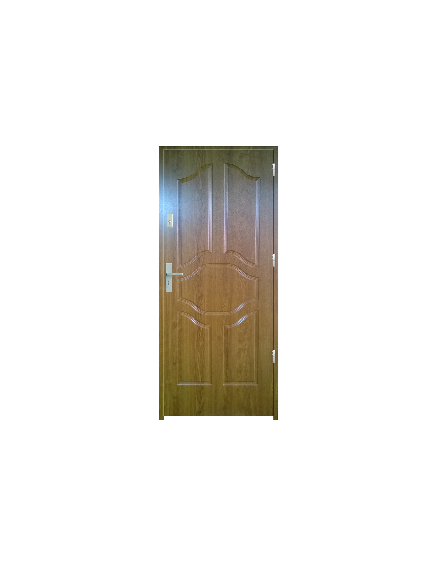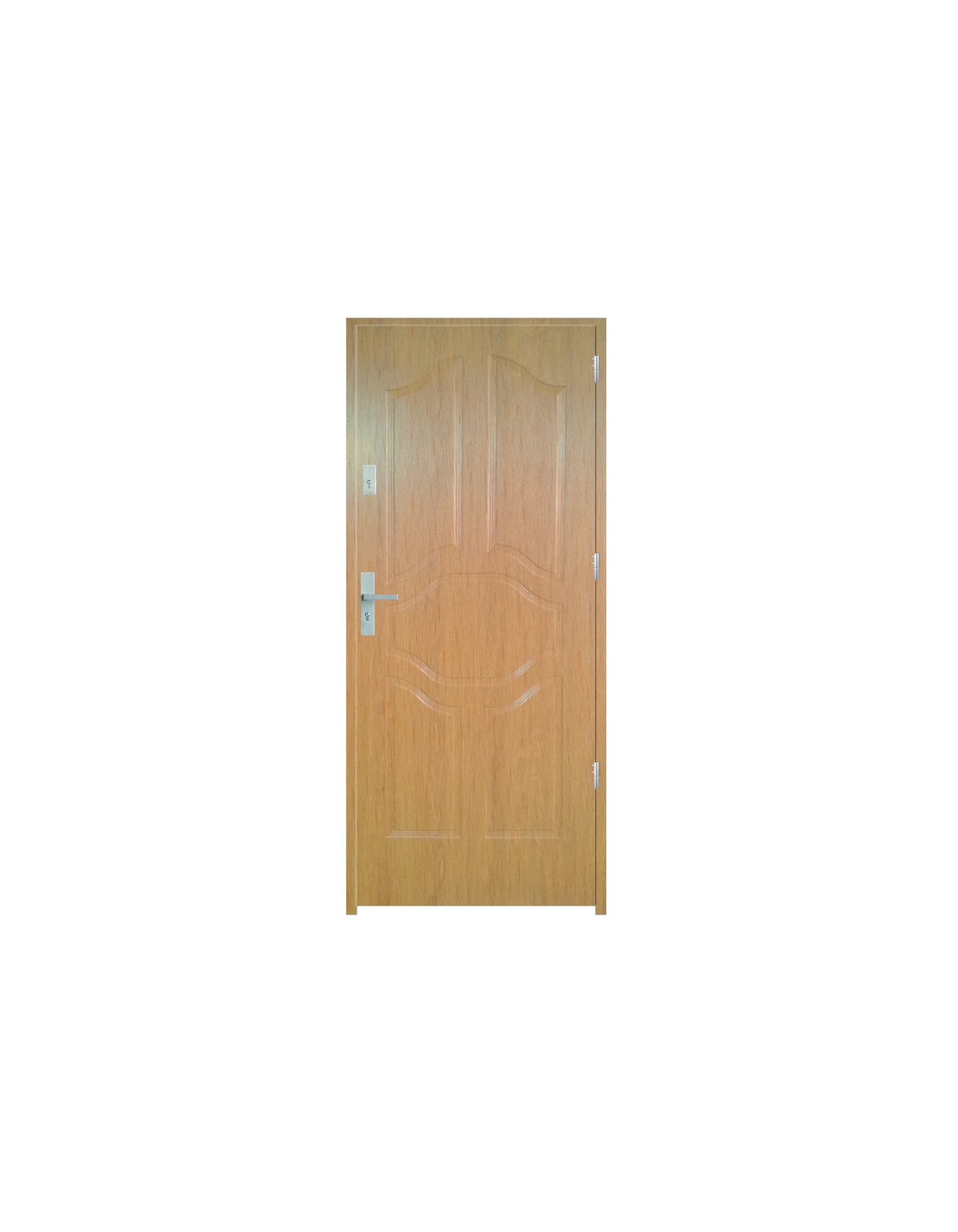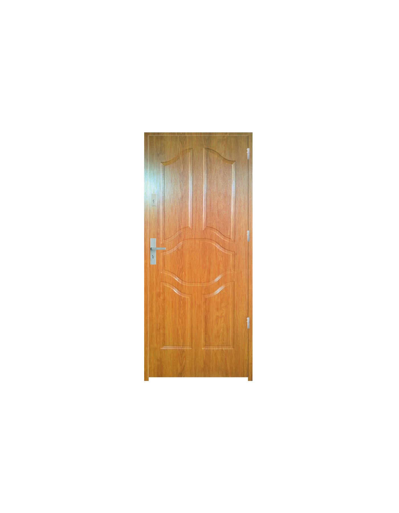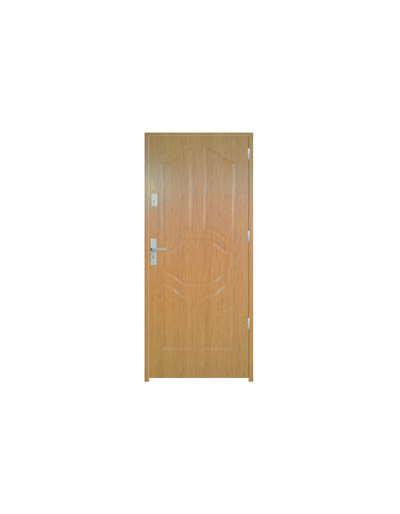 Skrzydło drzwiowe wykonane z klejonego wzdłuż i w poprzek drewna sosnowego. Jego wypełnienie stanowi płyta wiórowa pełna i pianka wyciszająca. Takie wykonanie zwiększa wytrzymałość konstrukcji.