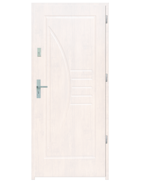 Skrzydło drzwiowe wykonane z klejonego wzdłuż i w poprzek drewna sosnowego. Jego wypełnienie stanowi płyta wiórowa pełna i pianka wyciszająca. Takie wykonanie zwiększa wytrzymałość konstrukcji.