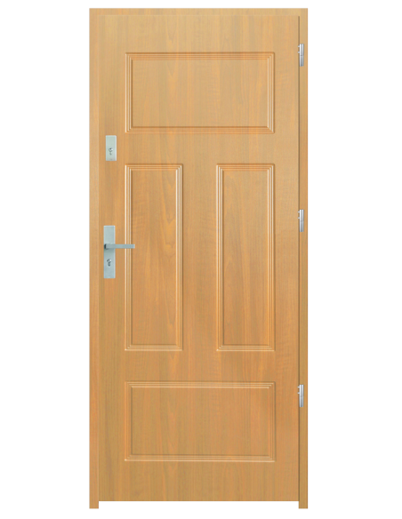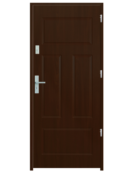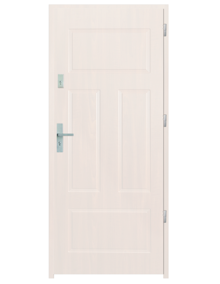 Skrzydło drzwiowe wykonane z klejonego wzdłuż i w poprzek drewna sosnowego. Jego wypełnienie stanowi płyta wiórowa pełna i pianka wyciszająca. Takie wykonanie zwiększa wytrzymałość konstrukcji.