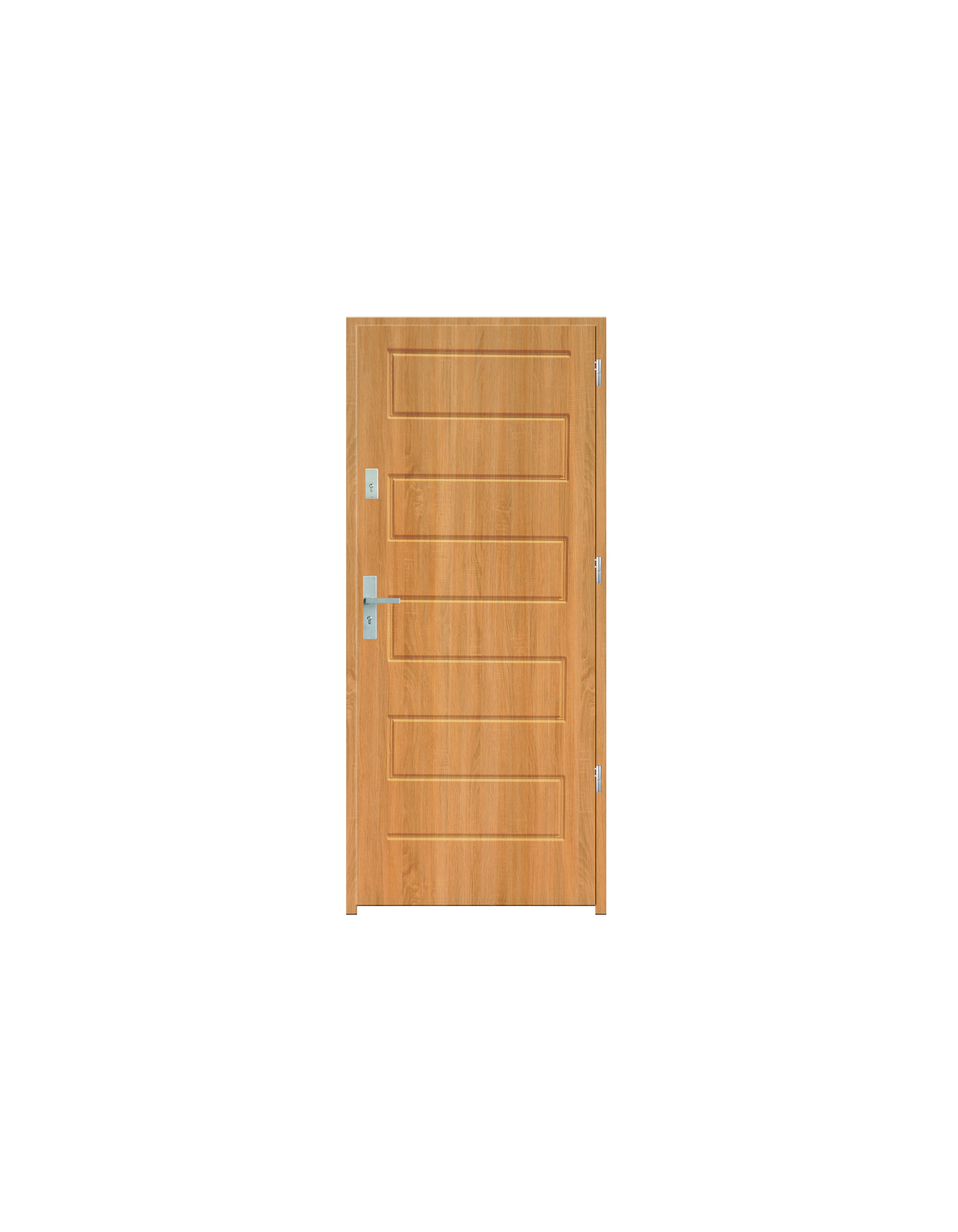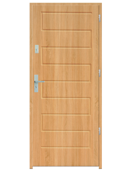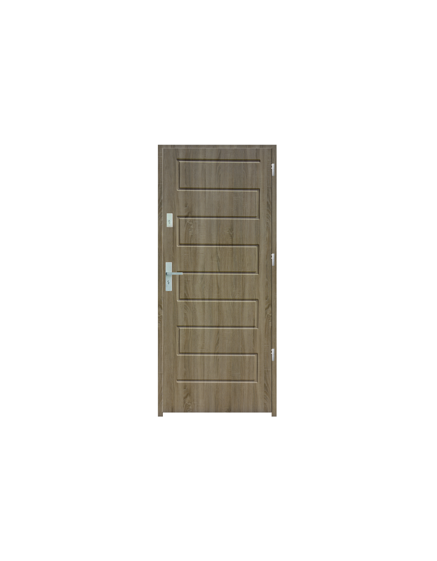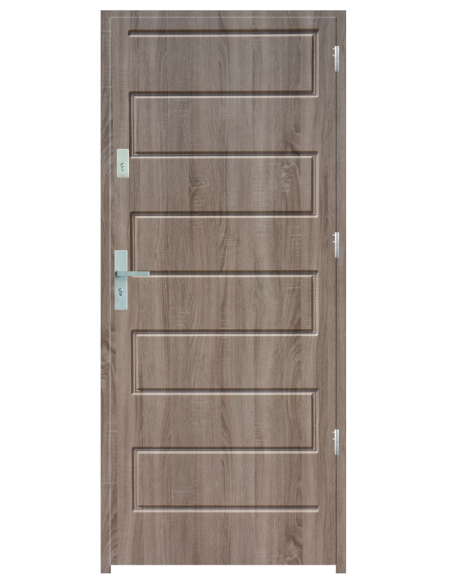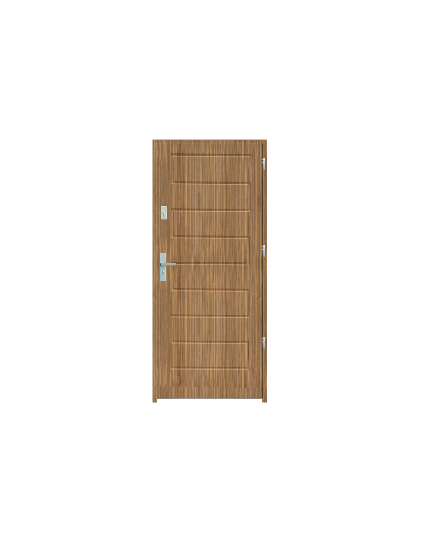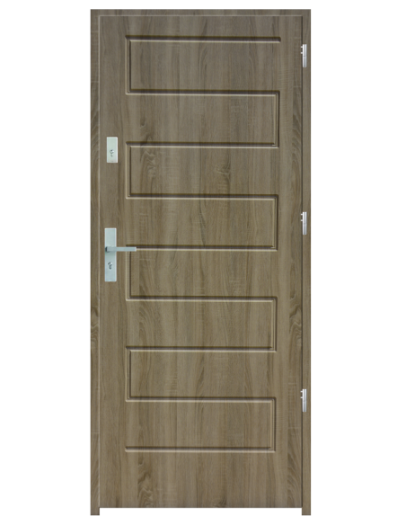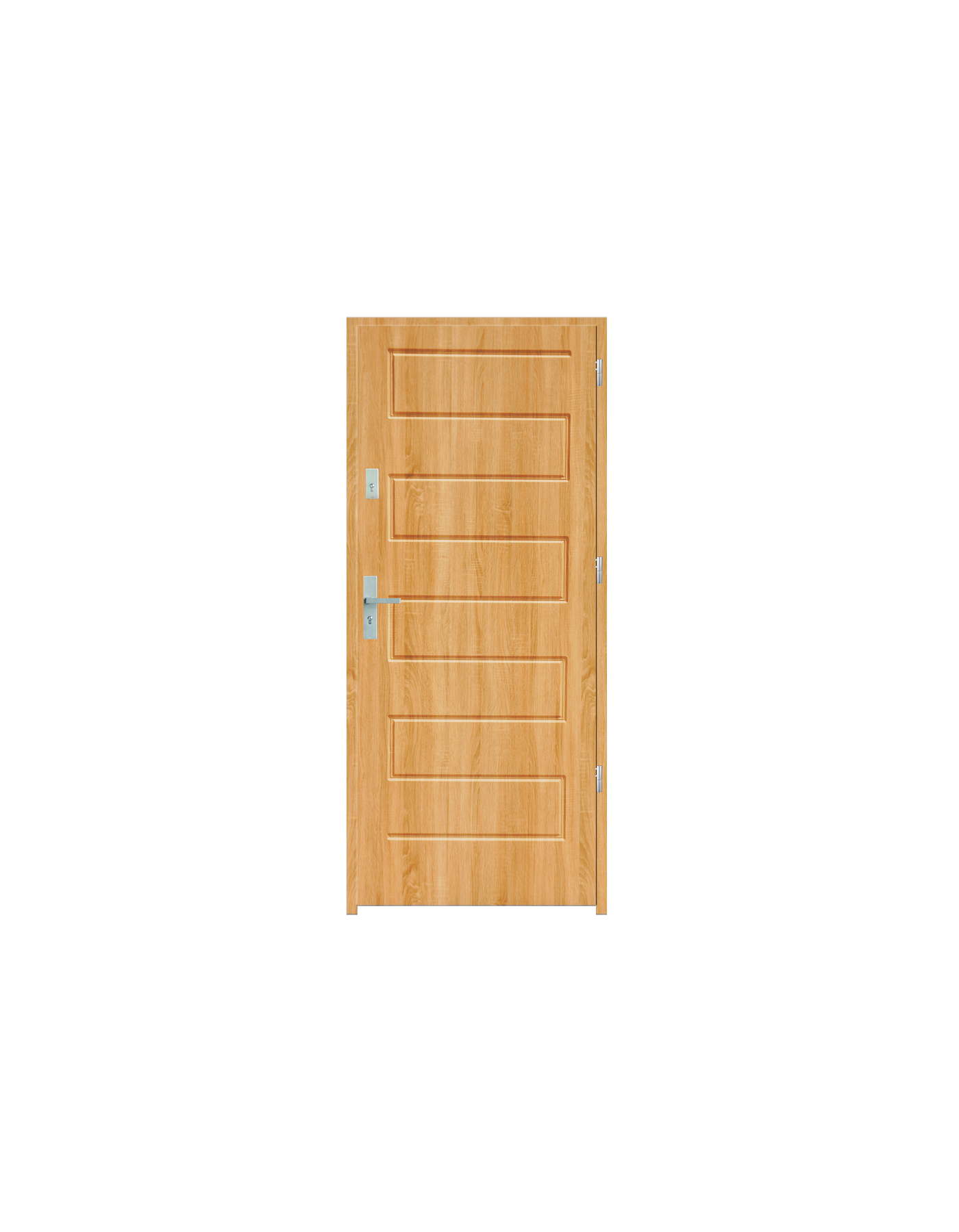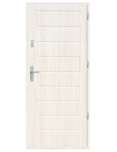 Skrzydło drzwiowe wykonane z klejonego wzdłuż i w poprzek drewna sosnowego. Jego wypełnienie stanowi płyta wiórowa pełna i pianka wyciszająca. Takie wykonanie zwiększa wytrzymałość konstrukcji.