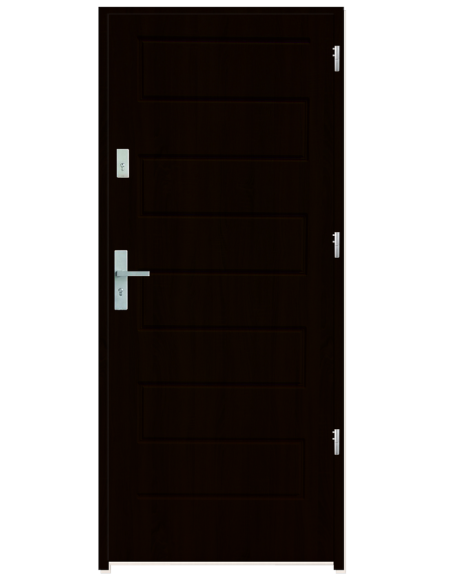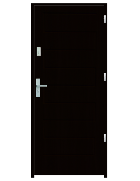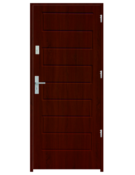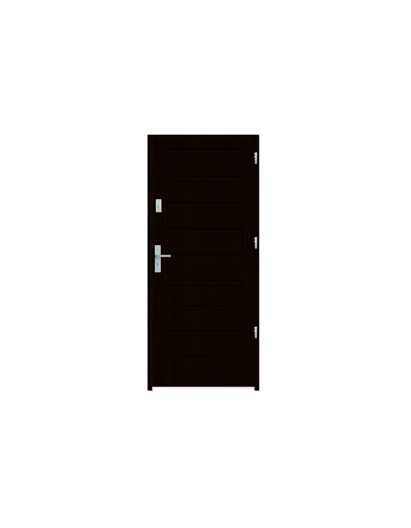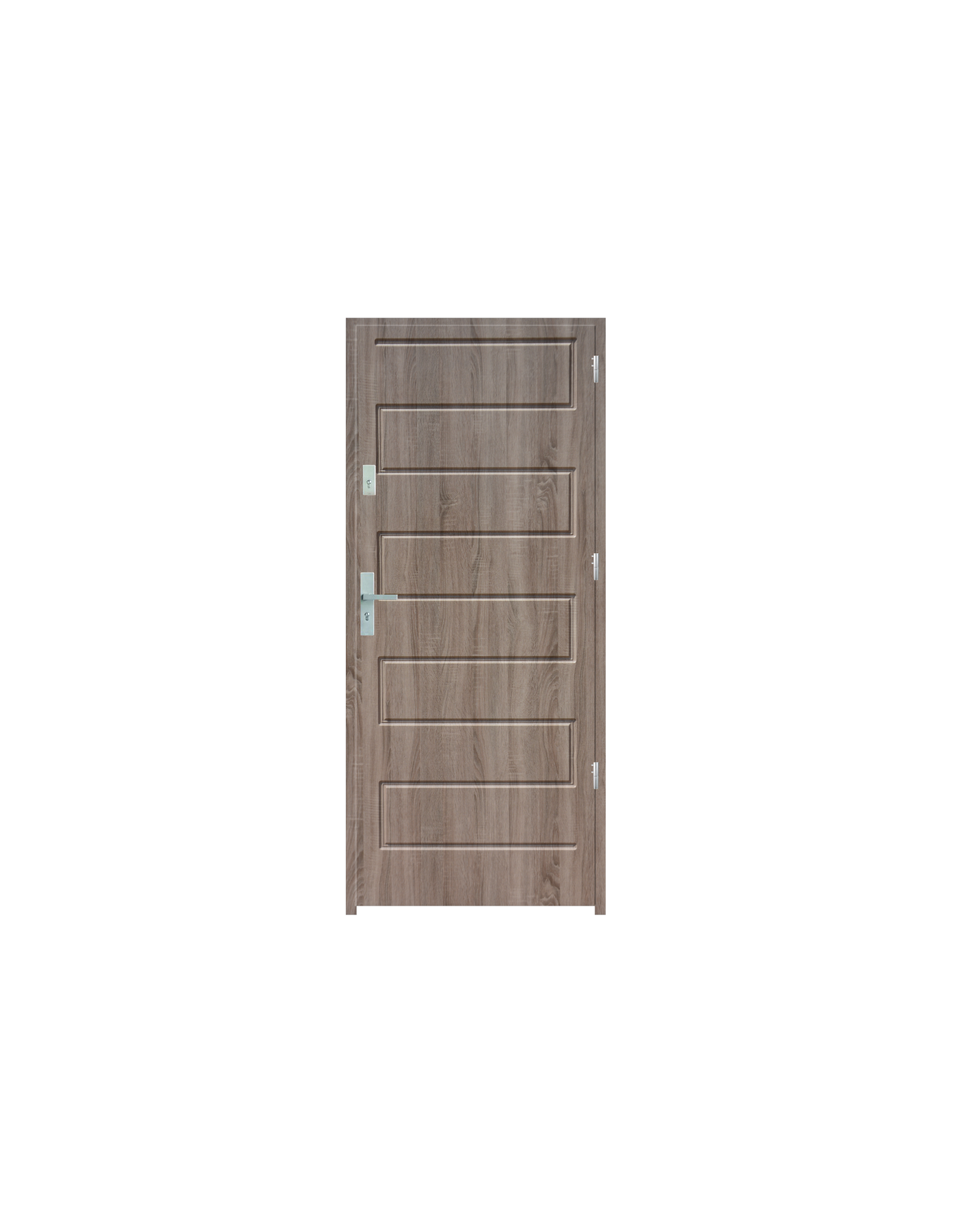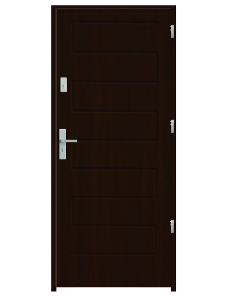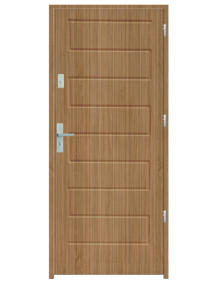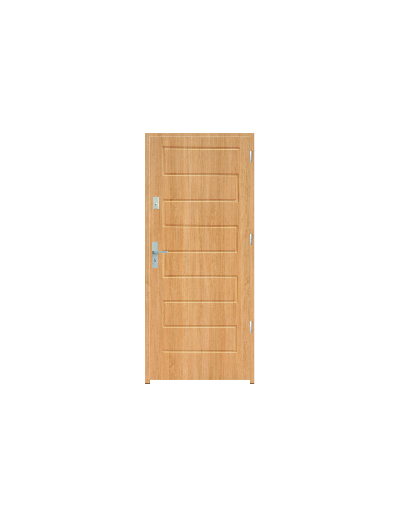 Skrzydło drzwiowe wykonane z klejonego wzdłuż i w poprzek drewna sosnowego. Jego wypełnienie stanowi płyta wiórowa pełna i pianka wyciszająca. Takie wykonanie zwiększa wytrzymałość konstrukcji.