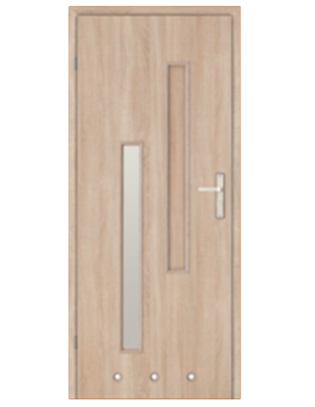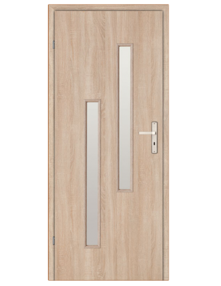 Konstrukcję skrzydła stanowi rama drewniana wzmacniająca drzwi oraz podtrzymująca szybę oraz płycinę wzmocniona wypełnieniem kartonowym w postaci plastra miodu. Konstrukcja jest obustronnie pokryta lakierowaną płytą HDF.