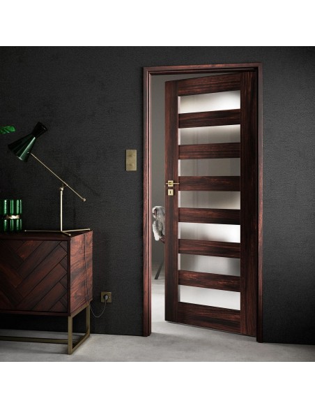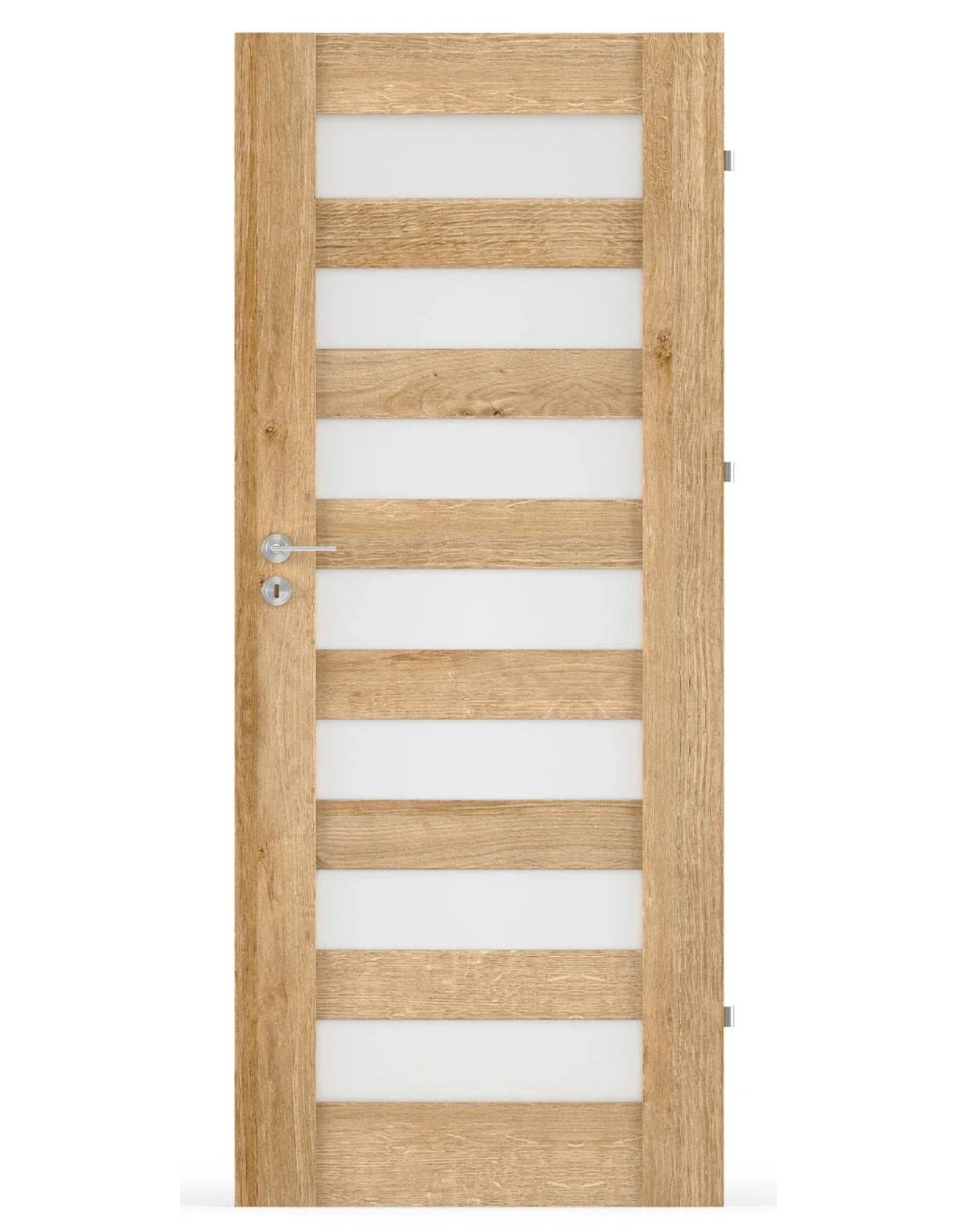 Skrzydło drzwiowe z kolekcji PRESTIGE wykonane jest w solidnej konstrukcji ramowej o grubości 38 mm. Pionowe elementy z MDF o grubości 38 mm oraz poprzeczne panele z MDF o grubości 30 mm i 16 mm tworzą stabilną i trwałą strukturę. Wypełnienie może stanowić dekor o grubości 6 lub 9 mm bądź elegancka szyba o grubości 4 mm, co umożliwia dostosowanie wyglądu drzwi do indywidualnych preferencji.