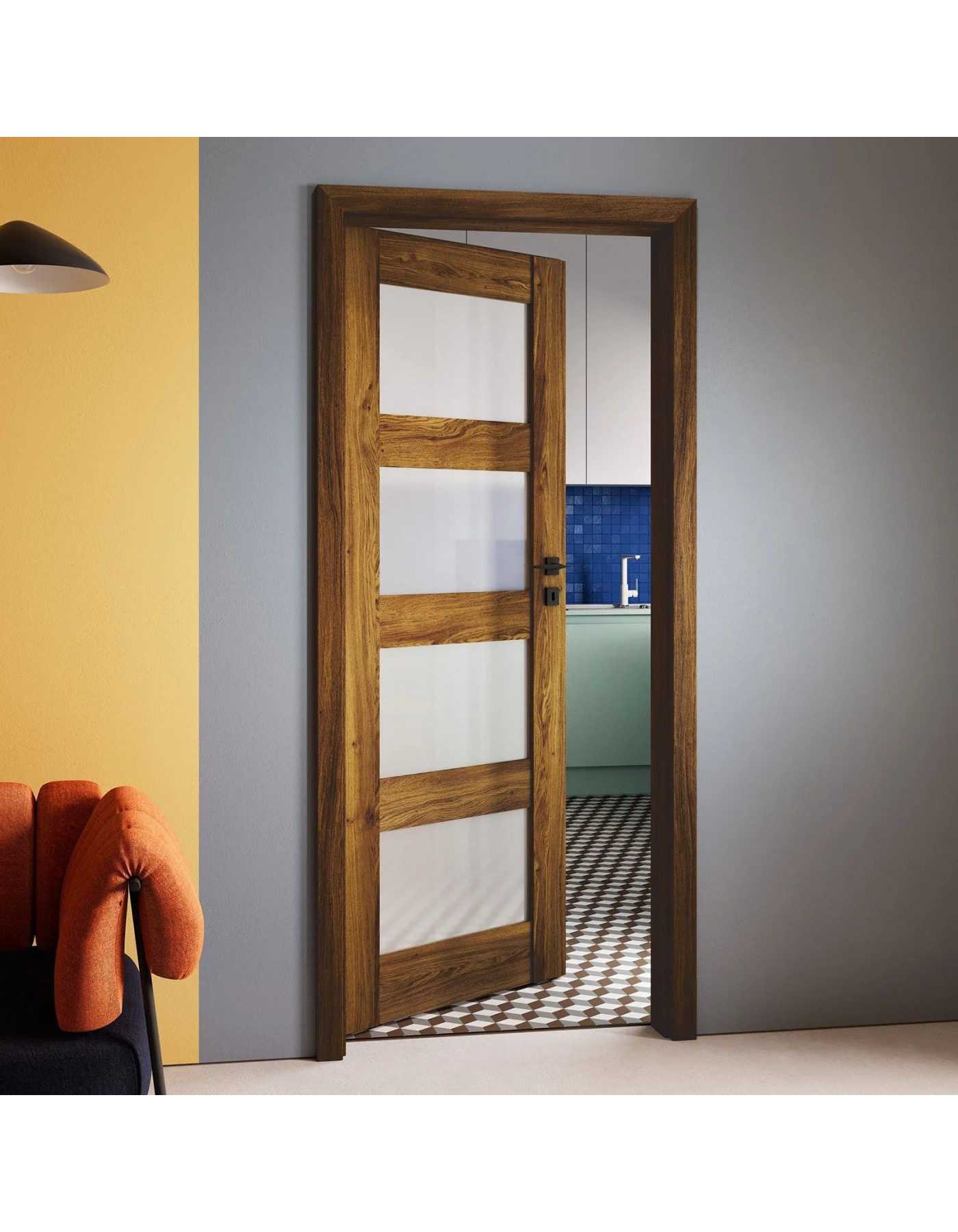 Skrzydło drzwiowe z kolekcji PRESTIGE wykonane jest w solidnej konstrukcji ramowej o grubości 38 mm. Pionowe elementy z MDF o grubości 38 mm oraz poprzeczne panele z MDF o grubości 30 mm i 16 mm tworzą stabilną i trwałą strukturę. Wypełnienie może stanowić dekor o grubości 6 lub 9 mm bądź elegancka szyba o grubości 4 mm, co umożliwia dostosowanie wyglądu drzwi do indywidualnych preferencji.