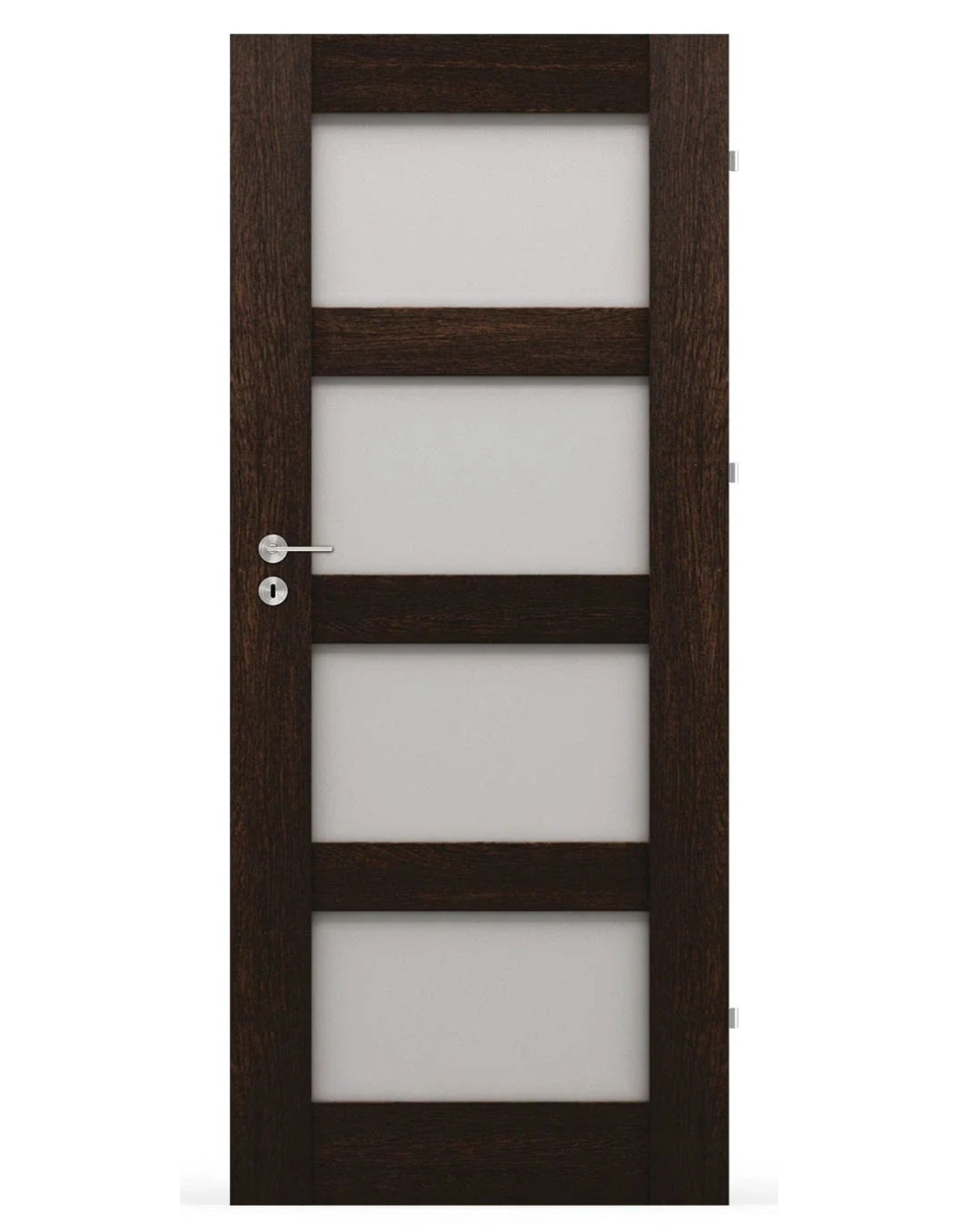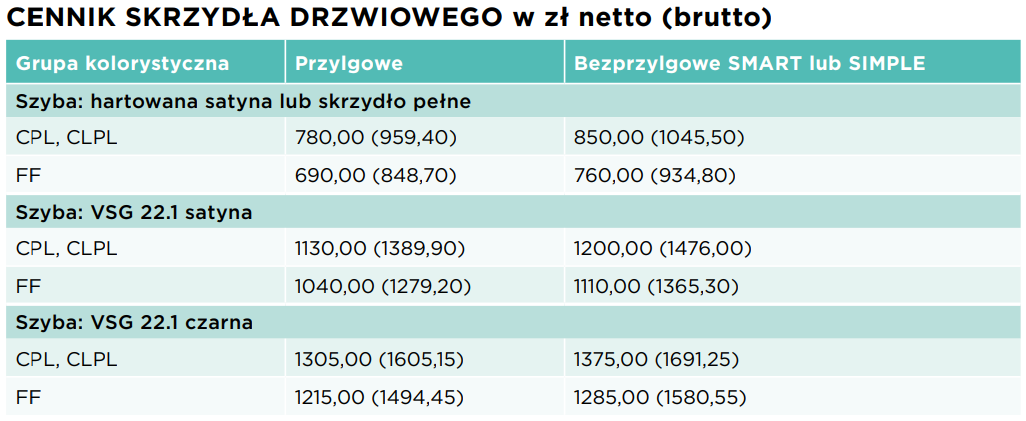 Dostępne opcje dodatkowe to technologia bezprzylgowa SIMPLE, szyba VSG 2.2.1 w wersji Satyna lub Czarna, niestandardowe rozmiary, system przesuwny oraz system dwuskrzydłowy. Możliwość wyposażenia drzwi w uszczelkę opadającą oraz różne opcje wentylacji (podcięcie, tuleje lub kratka) pozwalają na jeszcze większą personalizację i dostosowanie do indywidualnych potrzeb użytkowników. Kratka wentylacyjna dostępna jest dla drzwi o szerokości „80” i szerszych.