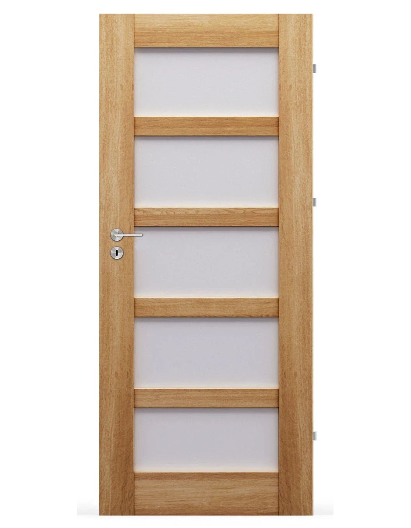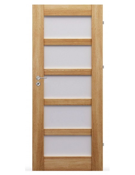 W standardzie drzwi PRESTIGE oferują technologię przylgową oraz solidną konstrukcję ramową z ramiakiem z MDF, wzmocnioną drewnianymi kołkami stabilizującymi i piórem stabilizującym, co zapewnia brak pustych przestrzeni wewnątrz skrzydła. Trzy zawiasy dwubolcowe regulowane w kolorze nikiel gwarantują wysoką wytrzymałość na obciążenia. Drzwi te charakteryzują się również brakiem ramki przyszybowej, co dodaje im nowoczesnego wyglądu. Standardowa szyba satyna hartowana oraz szeroki wybór dekorów umożliwiają pełną personalizację.