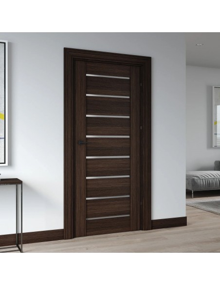 Skrzydło drzwiowe z kolekcji PRESTIGE wykonane jest w solidnej konstrukcji ramowej o grubości 38 mm. Pionowe elementy z MDF o grubości 38 mm oraz poprzeczne panele z MDF o grubości 30 mm i 16 mm tworzą stabilną i trwałą strukturę. Wypełnienie może stanowić dekor o grubości 6 lub 9 mm bądź elegancka szyba o grubości 4 mm, co umożliwia dostosowanie wyglądu drzwi do indywidualnych preferencji.