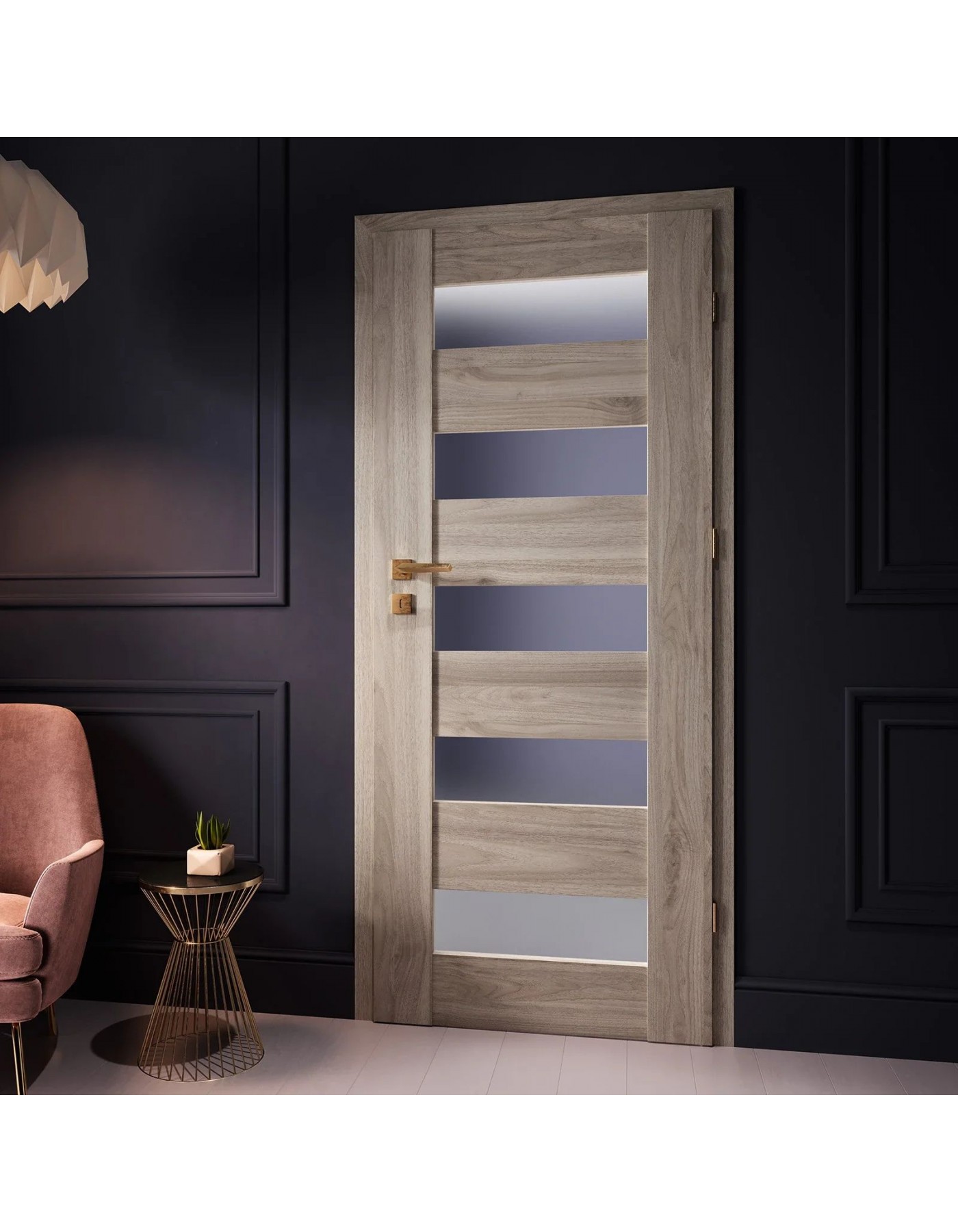 Skrzydło drzwiowe z kolekcji PRESTIGE wykonane jest w solidnej konstrukcji ramowej o grubości 38 mm. Pionowe elementy z MDF o grubości 38 mm oraz poprzeczne panele z MDF o grubości 30 mm i 16 mm tworzą stabilną i trwałą strukturę. Wypełnienie może stanowić dekor o grubości 6 lub 9 mm bądź elegancka szyba o grubości 4 mm, co umożliwia dostosowanie wyglądu drzwi do indywidualnych preferencji.