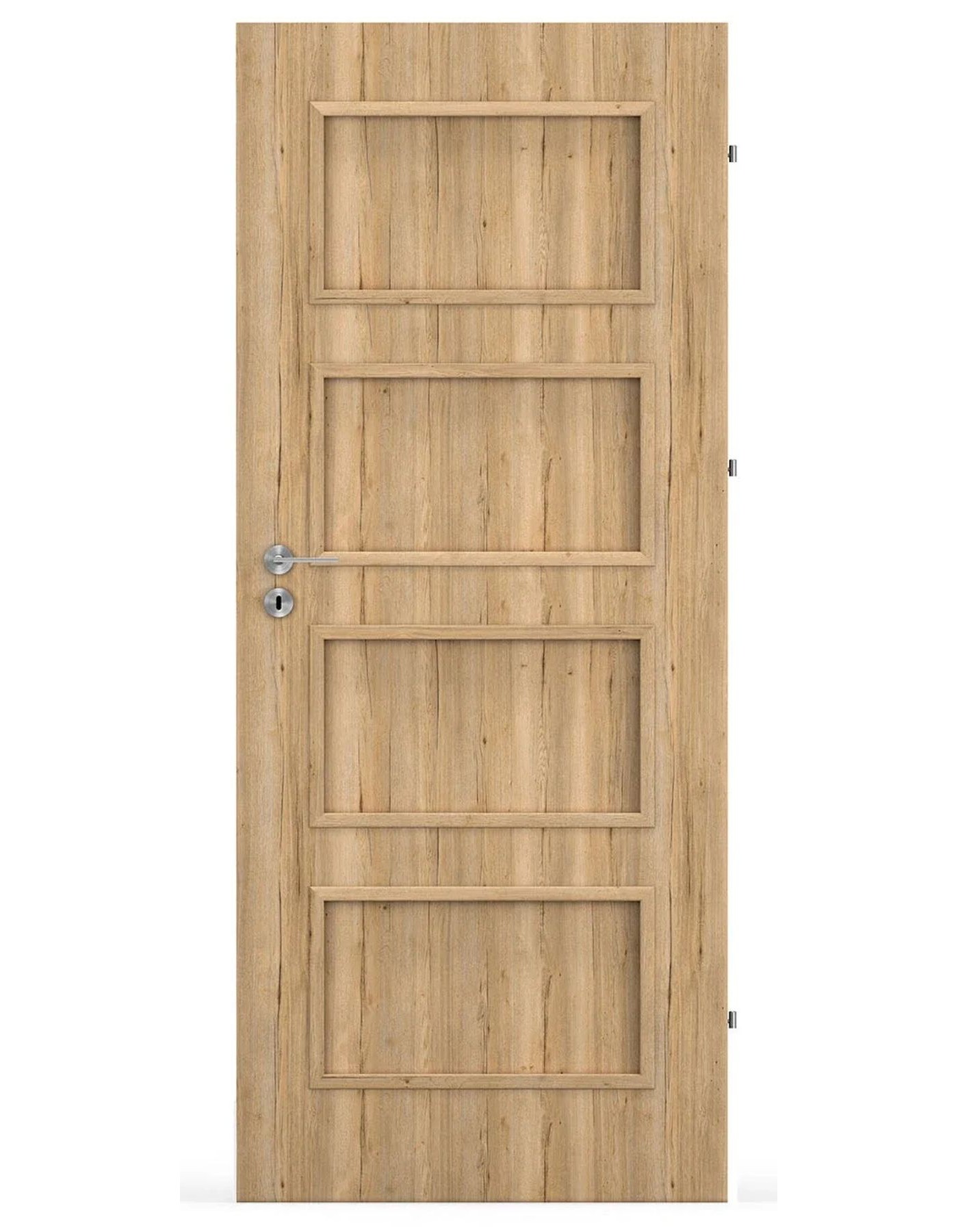 Skrzydło drzwiowe z kolekcji BASIC wykonane jest w konstrukcji płytowej, o grubości 40 mm. Podstawą konstrukcji jest wytrzymały ramiak z drewnopochodnej płyty MDF, wypełniony stabilizującą warstwą tzw. „plastra miodu”. Zewnętrzną warstwę stanowi drewnopochodna płyta HDF o grubości 3 mm, wykończona wybranym dekorem. Dzięki zastosowaniu podwójnego ramiaka przy dolnej krawędzi drzwi, można je skracać do 30 mm, co pozwala na łatwe dopasowanie do różnych wysokości pomieszczeń.